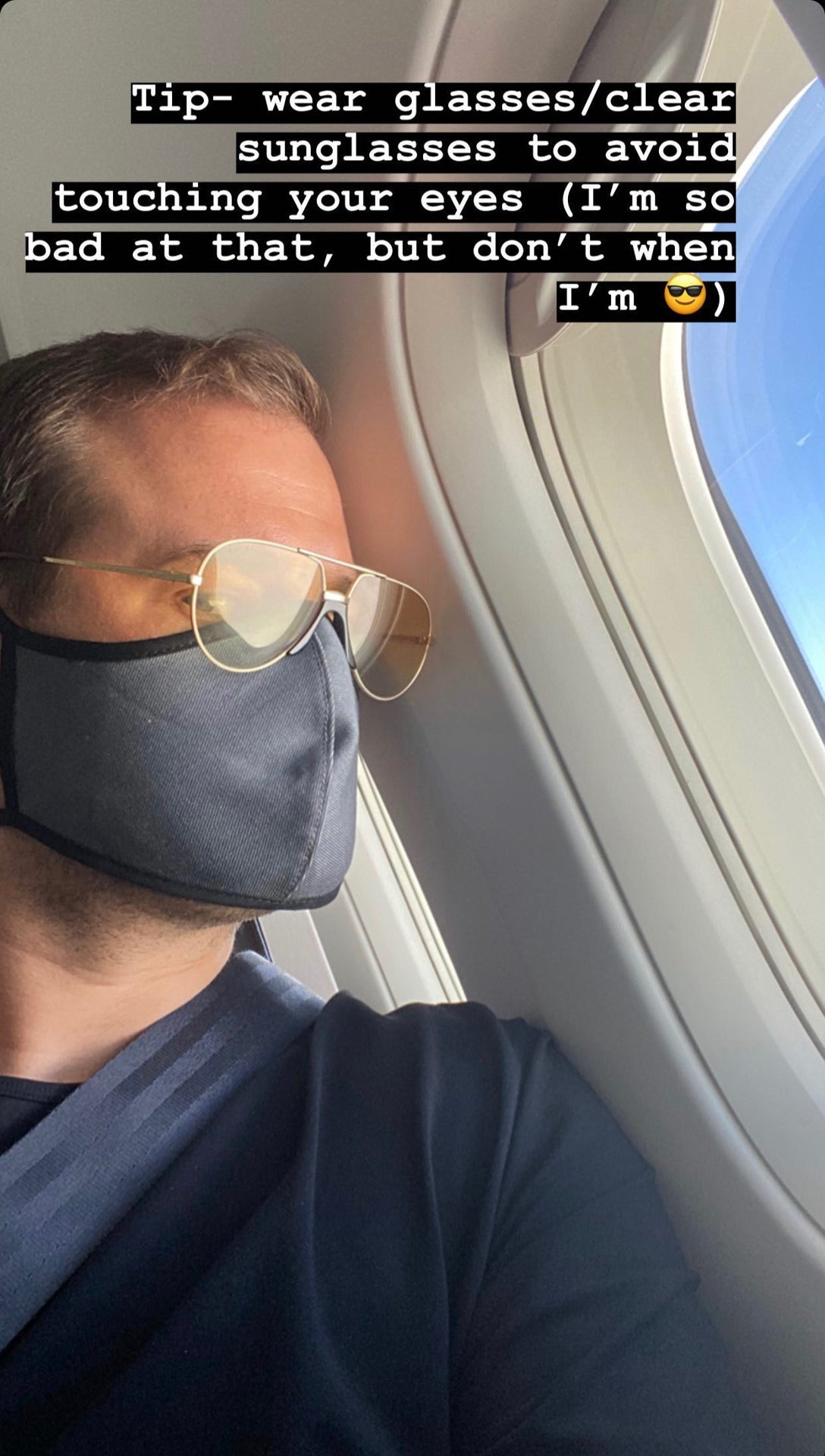 I made sure to wear sunglasses while in flight, in order to prevent unwanted face-touching.