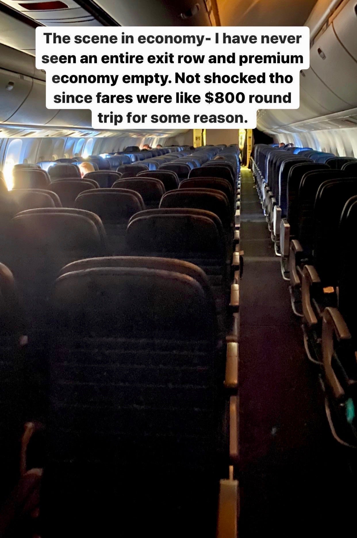 Once I got on board, I noticed that business class (I was flying a reconfigured Boeing 767 with the "true" Polaris seats up front) was mostly full, while only about 20 people were sitting in coach.