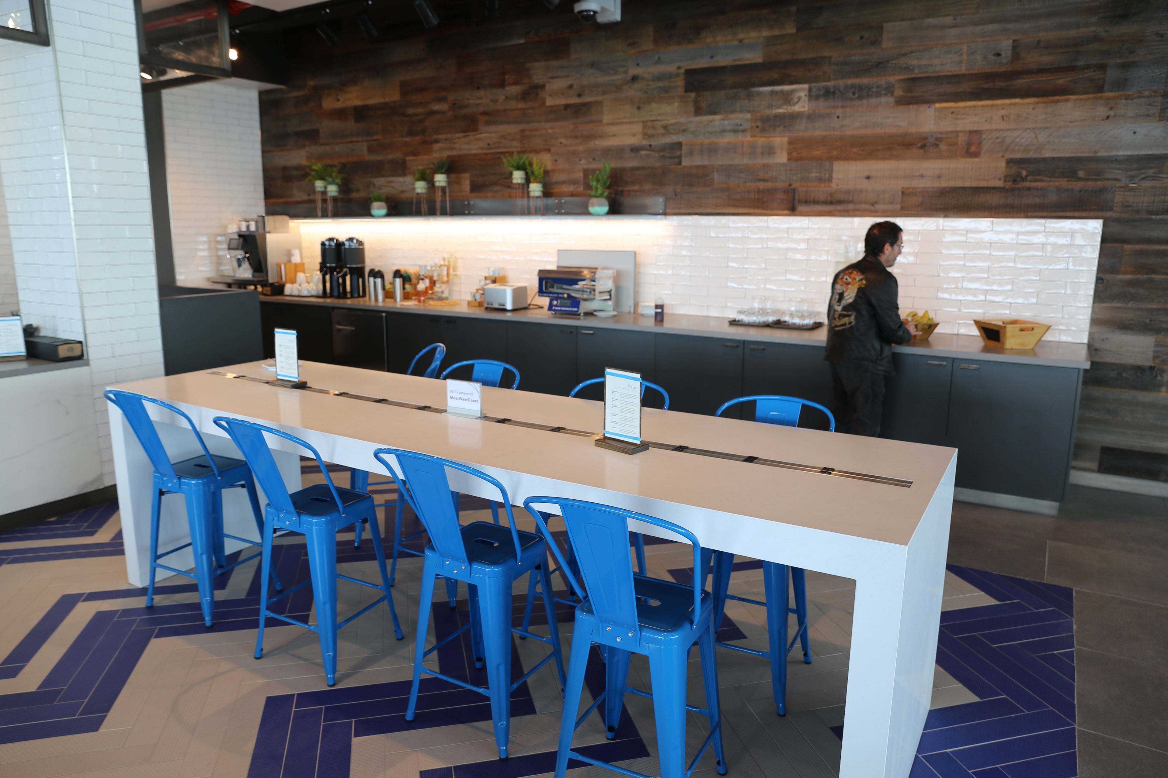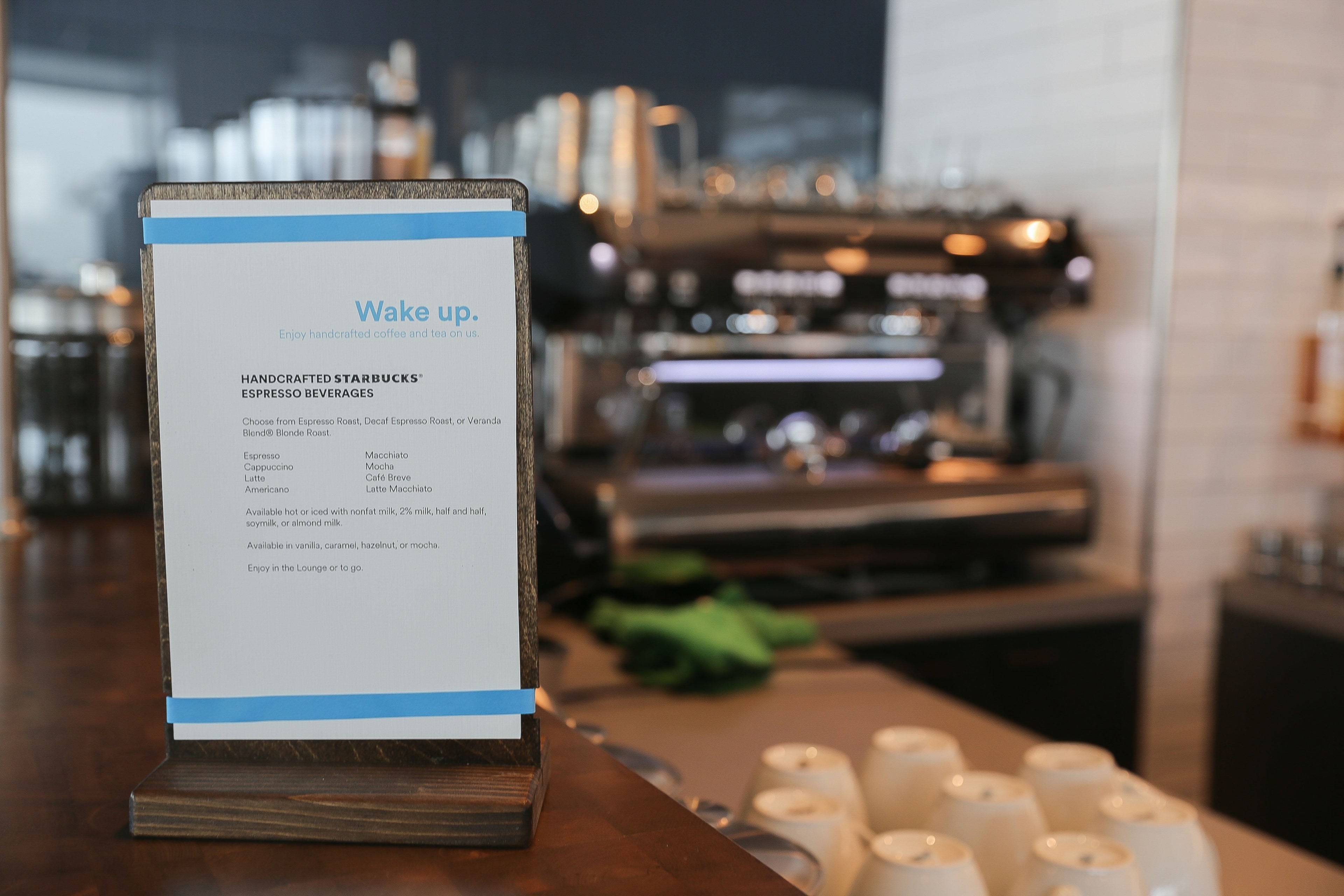 What's probably the best part of the lounge is the coffee bar. You're not going to be limited to just drip coffee that comes from a Keurig, but you'll be able to order a real espresso or latte — all free. An assortment of loose-leaf teas are available, too.