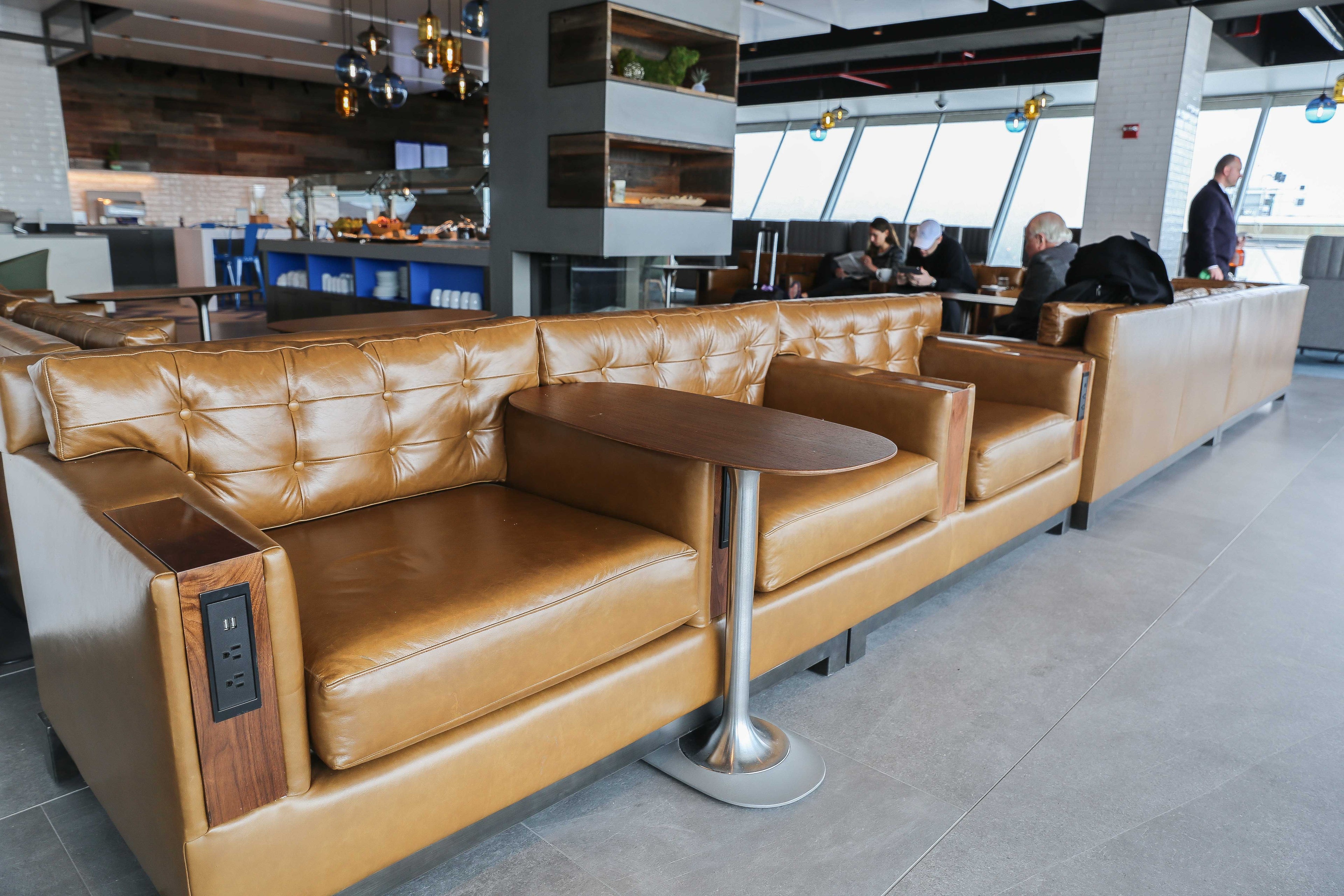 There's plenty of seating throughout the space. At the entrance, there's a table with loads of power outlets. In fact, Alex Judson, Manager of Lounge Development for Alaska, said that all 90 seats in the lounge have access to power.