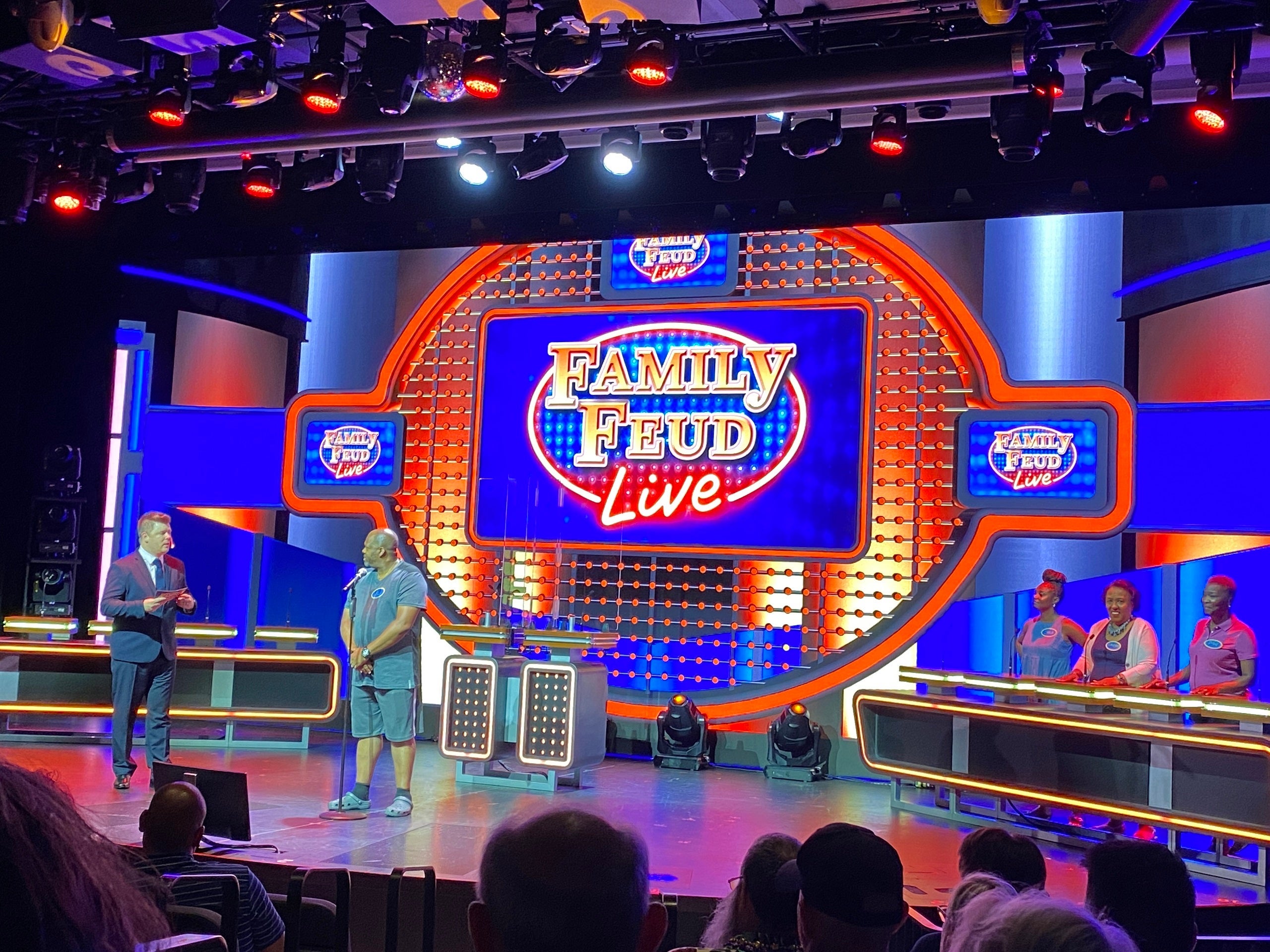 New in the theater is an at-sea version of the well-known "Family Feud" game show, where two families try to predict the most popular answers to survey questions for a chance to win prizes, such as onboard credit. Because the theater is tiny, three show times were necessary to accommodate all passengers. If you plan to go -- and, honestly, you should because it's worth it -- be sure to arrive early for a good seat.