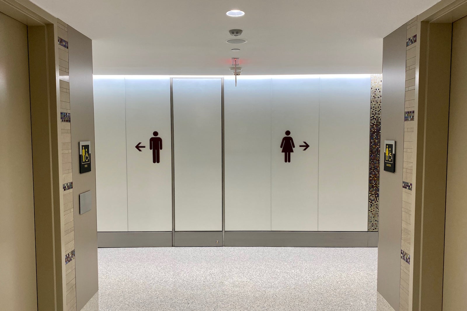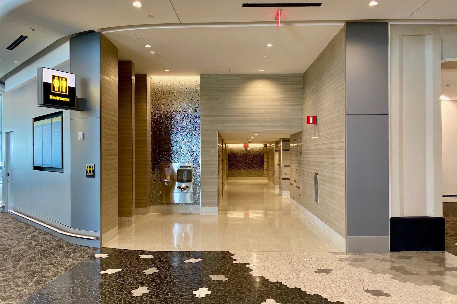 Like the rest of Terminal B, the bathrooms received a massive upgrade. There's now plenty of space in the modern, mirror-lined restrooms, along with functioning sinks, toilets and paper towel dispensers.