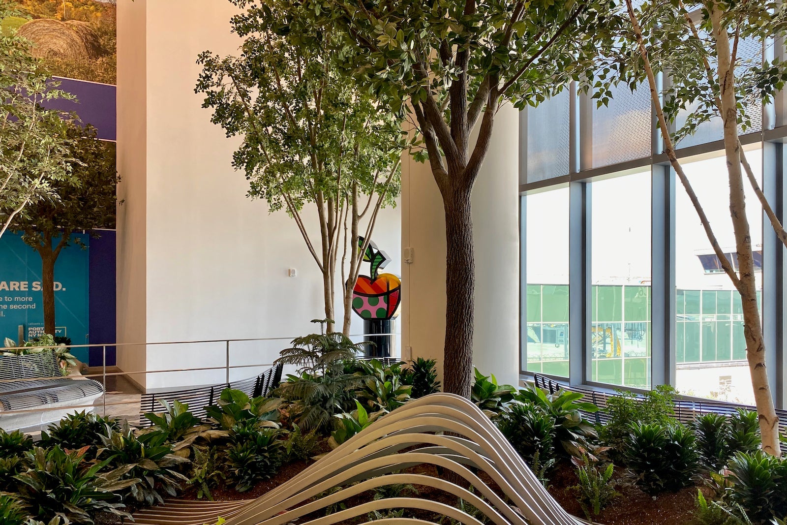 Once you enter the new gate area, you'll immediately be facing the indoor park, which was inspired by the small parks spread throughout New York City.