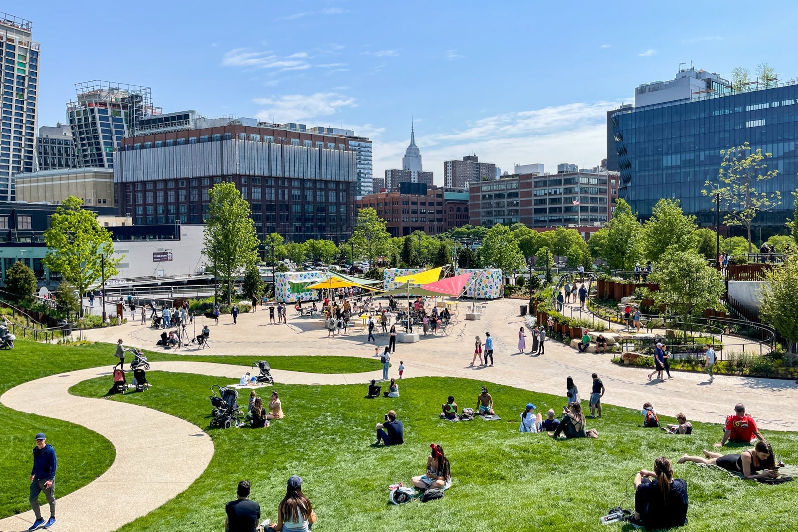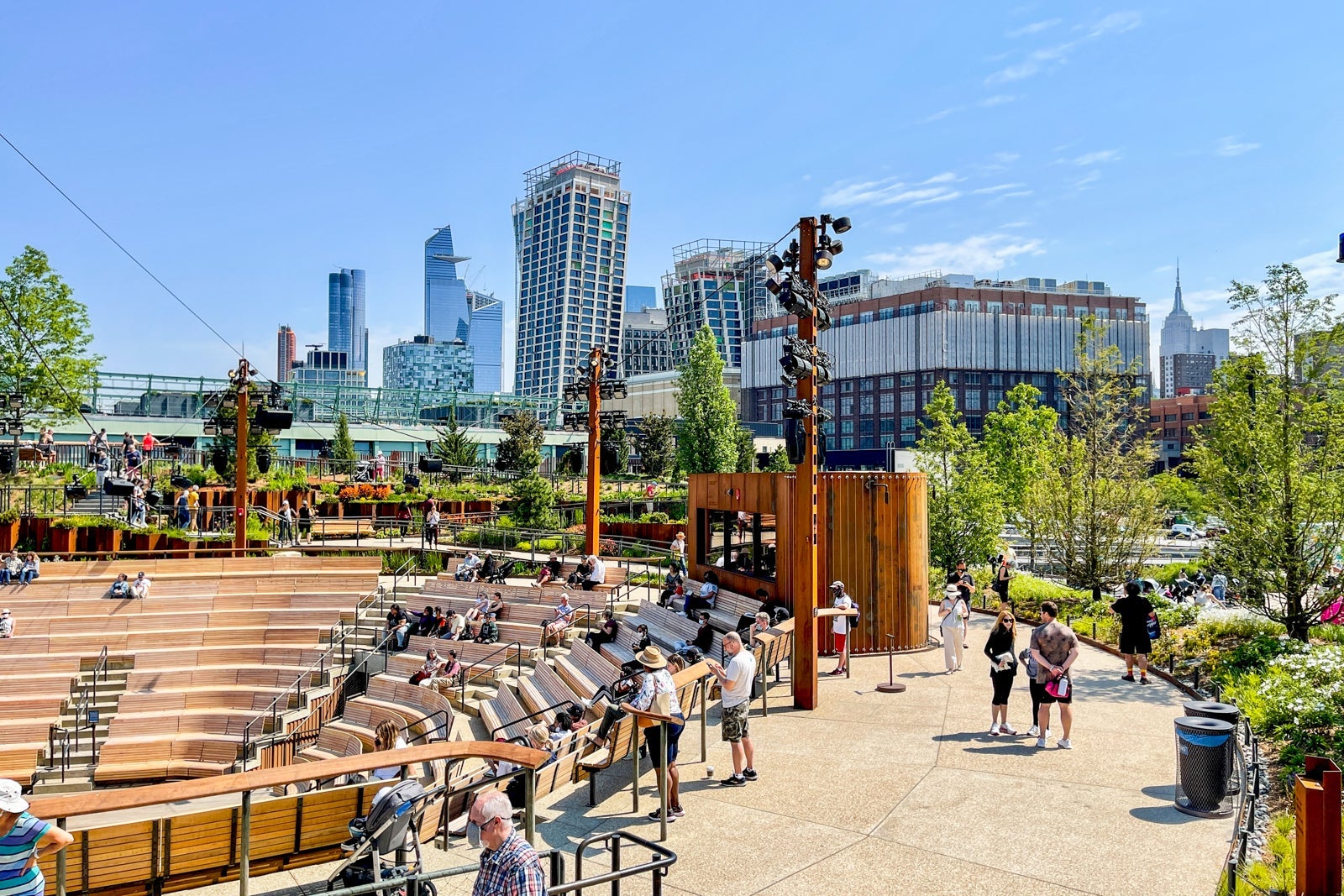 One World Trade, otherwise known as the Freedom Tower, can be seen prominently from just about everywhere in the park, and the iconic art deco Empire State Building peeks out above other Midtown towers at various points. And due north are the shimmering glass buildings of Hudson Yards, Manhattan's newest purpose-built neighborhood.
