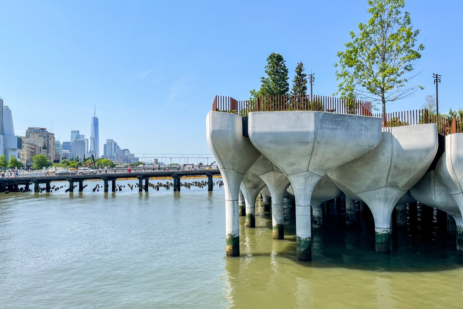Rising out of the Hudson River at Pier 54 near the intersection of 11th Avenue and 13th Street on a cluster of 132 concrete platforms of varying heights -- local New York publication Gothamist describes them as "tulip-esque" -- Little Island is poised to become a hit for New Yorkers looking for a retreat on the water away from the hustle and bustle of the big city that's roaring back to life.