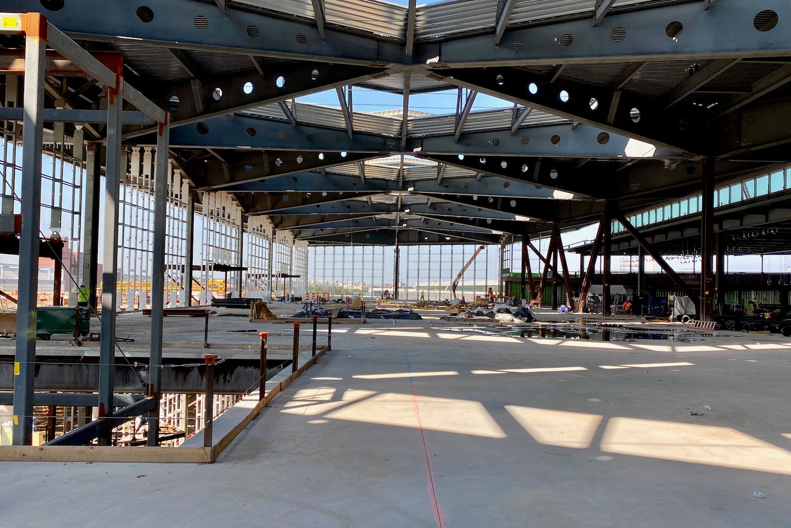 Terminal One is shaped like an inverted "T" and is slated to open in two separate phases. The first phase will be complete in about 12 to 14 months, according to Port Authority chairman Kevin O'Toole. 21 of the total 33 gates are expected to open then, with the remaining 12 gates coming online in 2022.