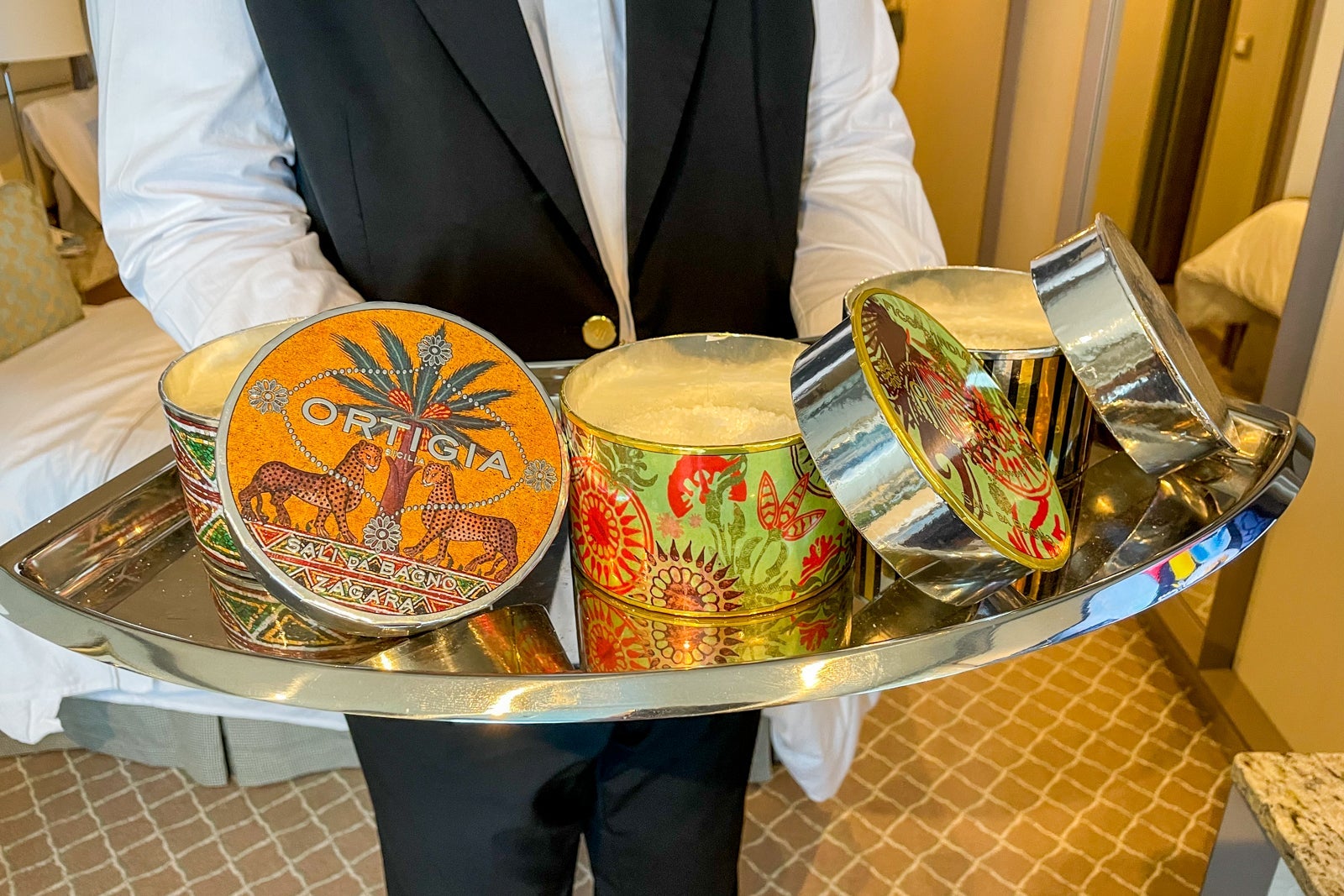 When we asked about different amenities, Antonio brought an entire tray of different brands and products to choose from, as if Bvlgari bath products may not be suitable. During sea days, he drew us fragrant bath with soaking salts.
