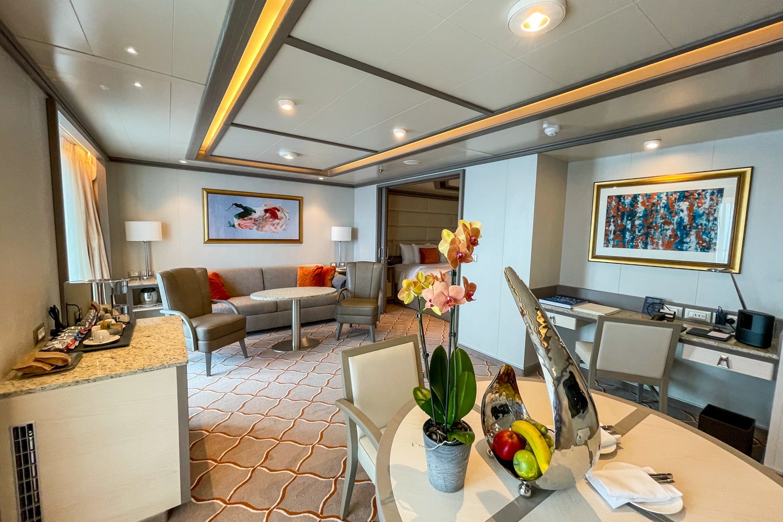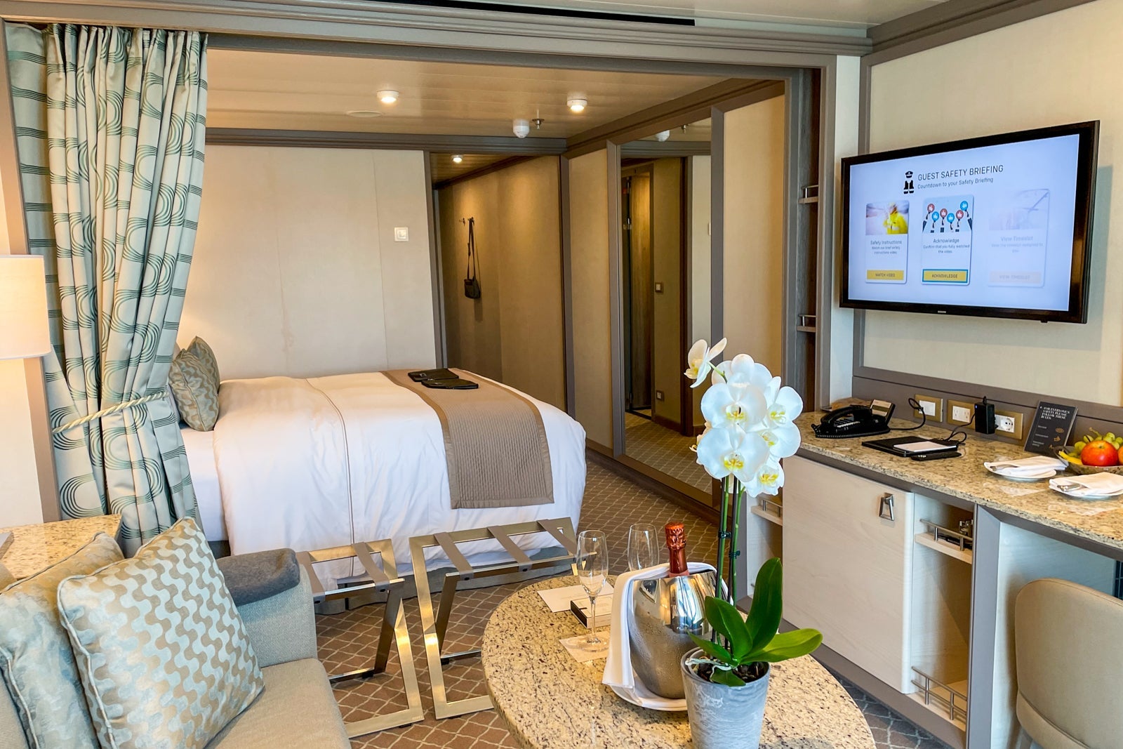 We also saw a Grand Suite, which has the largest balconies on board and, when booked with a second bedroom, sprawls over 1,970 square feet (including the teak veranda).