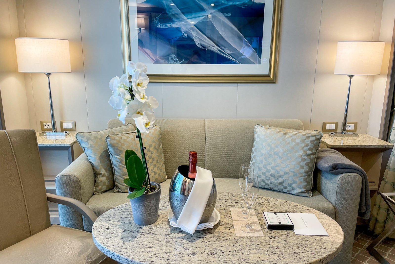 When we arrived, there was a bottle of Laurent-Perrier Cuvée Rosé waiting in the separate living and dining area, and our butler, Antonio, offered to pour us glasses and unpack our suitcases.