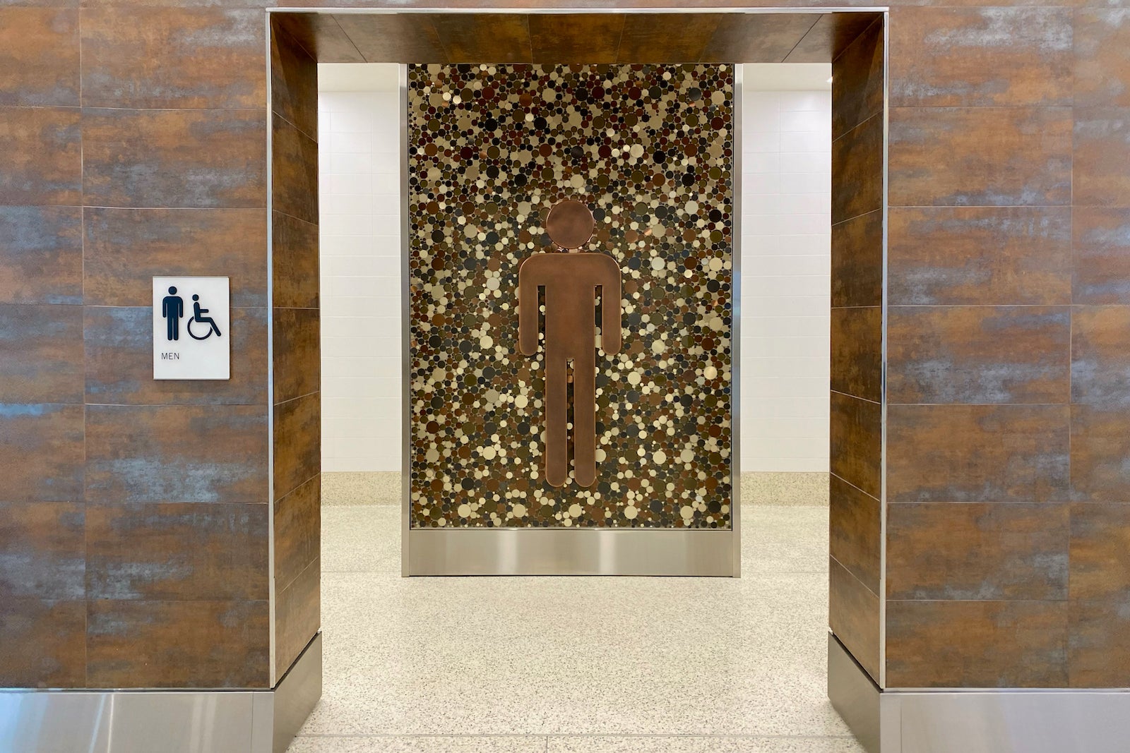 Each of the terminal's 24 restrooms features private lactation rooms, deep bathroom stalls and unique artwork.