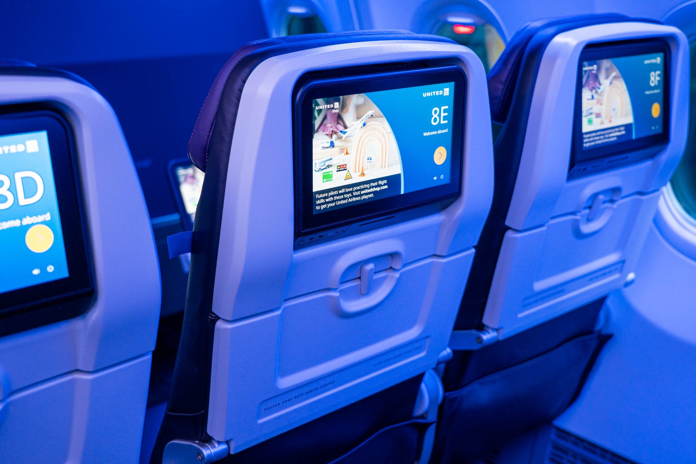 The Economy Plus and Economy seats feature 10-inch touchscreens, which, aside from their size, are just like the ones up in first class. They have a rotating selection of movies, TV shows, games, and more, according to Jaspreet Singh, a product manager at United who works on the airline's in-flight entertainment systems.