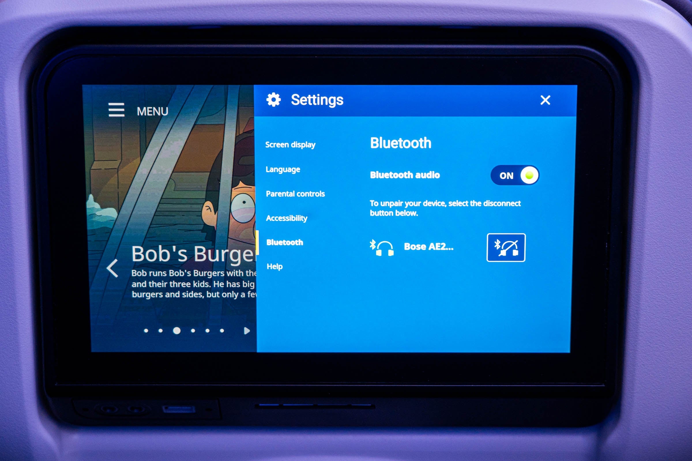 One cool feature available at every seat: The IFE screens have Bluetooth connectivity, meaning passengers can connect their personal wireless headphones for use during a flight, no adapters needed.