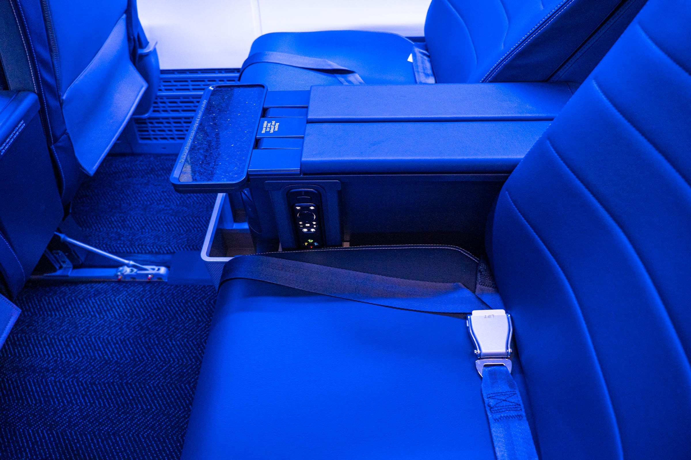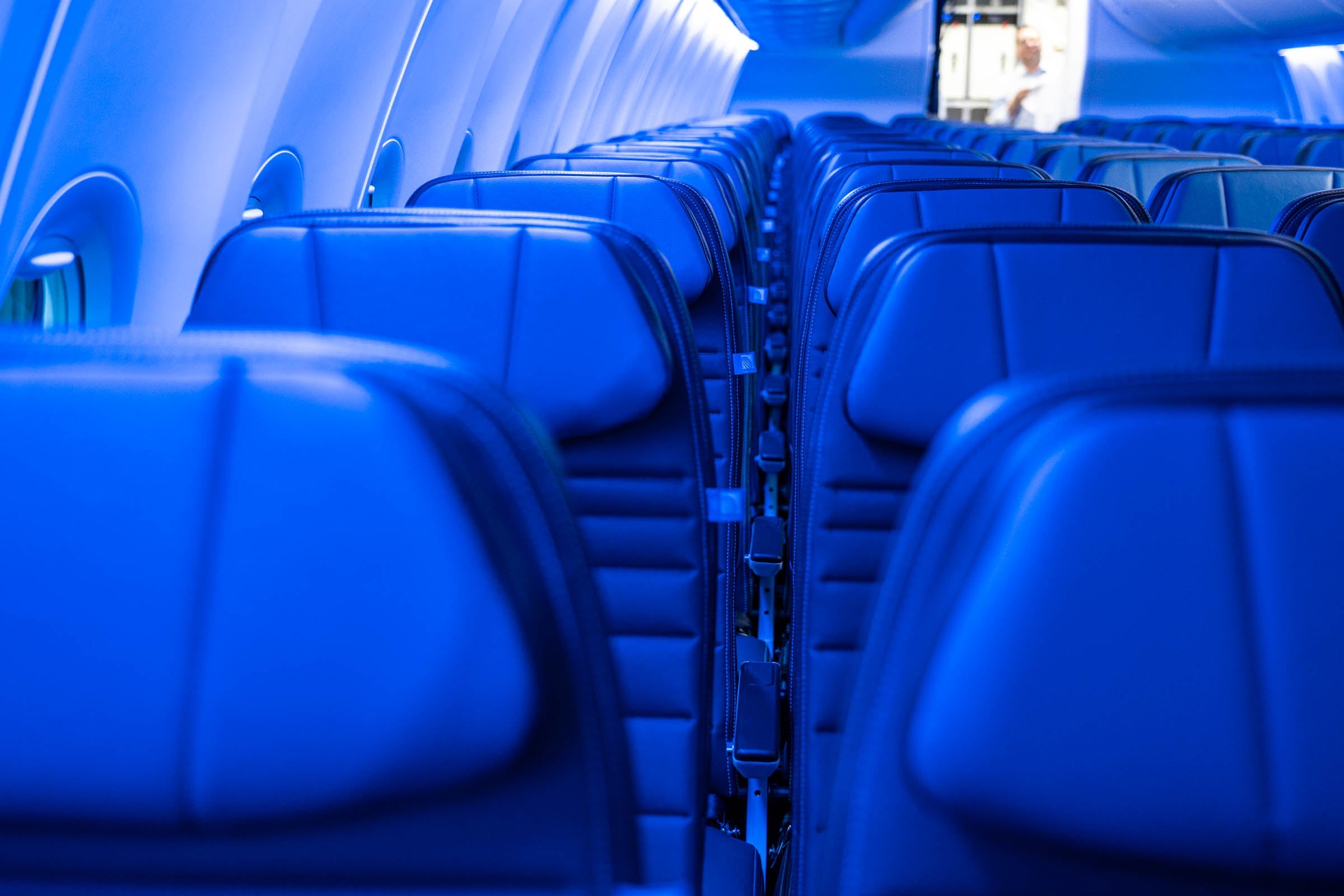 The cabin also has redesigned overhead bins with enough storage room for one full-sized carry-on bag per passenger — hopefully eliminating the dreaded gate-check.