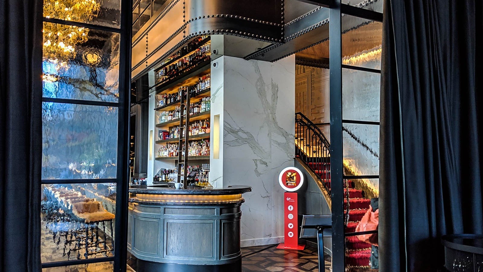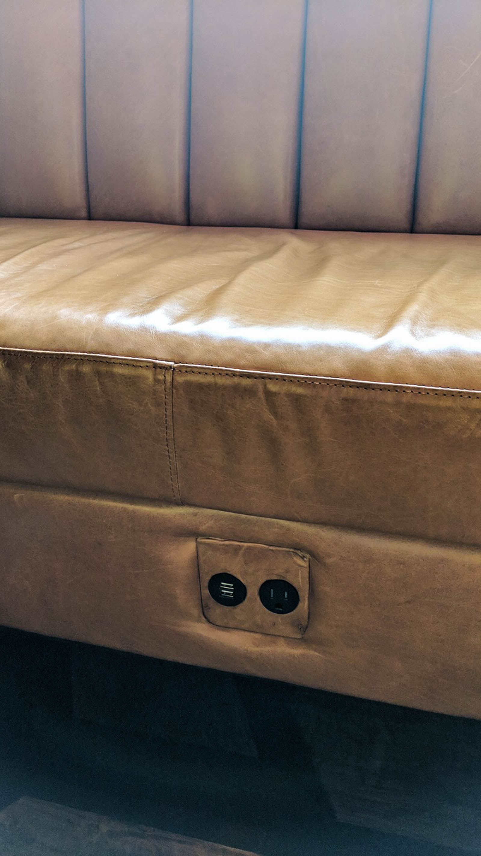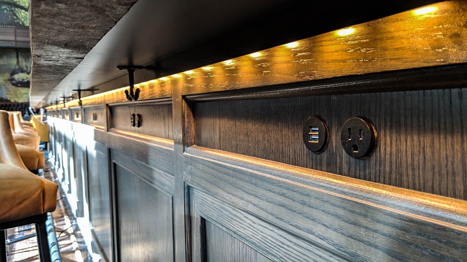 For those who enjoy working from hotel bars like I do, a thoughtful row of coat hooks and both power and USB outlets at each seat made it easy to stay plugged in. Vachetta leather bar stools were plushy and comfortable for long-term sitting.