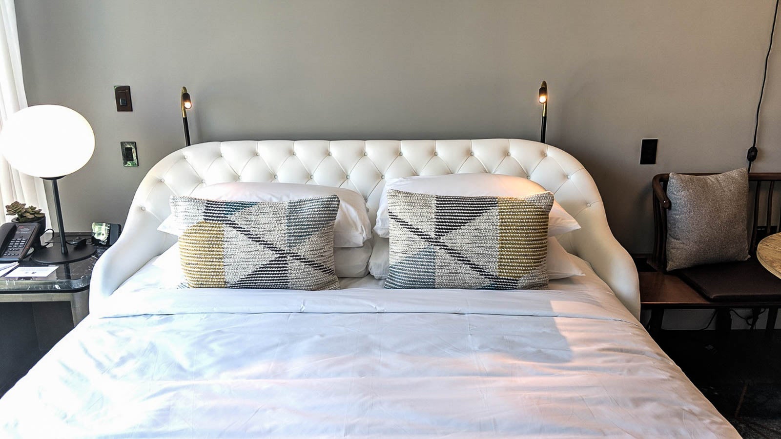 A large flatscreen at the foot of the bed allows guests to quickly scan the day's news, watch various shows, connect to online streaming channels, and even the room folio detailing breakdowns from every last items of food service you ordered.