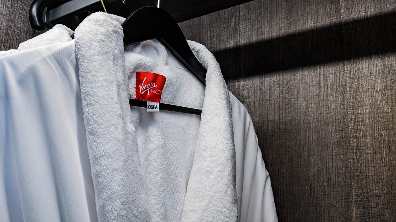 The closets included two soft, fluffy white robes prominently featuring the Virgin label.