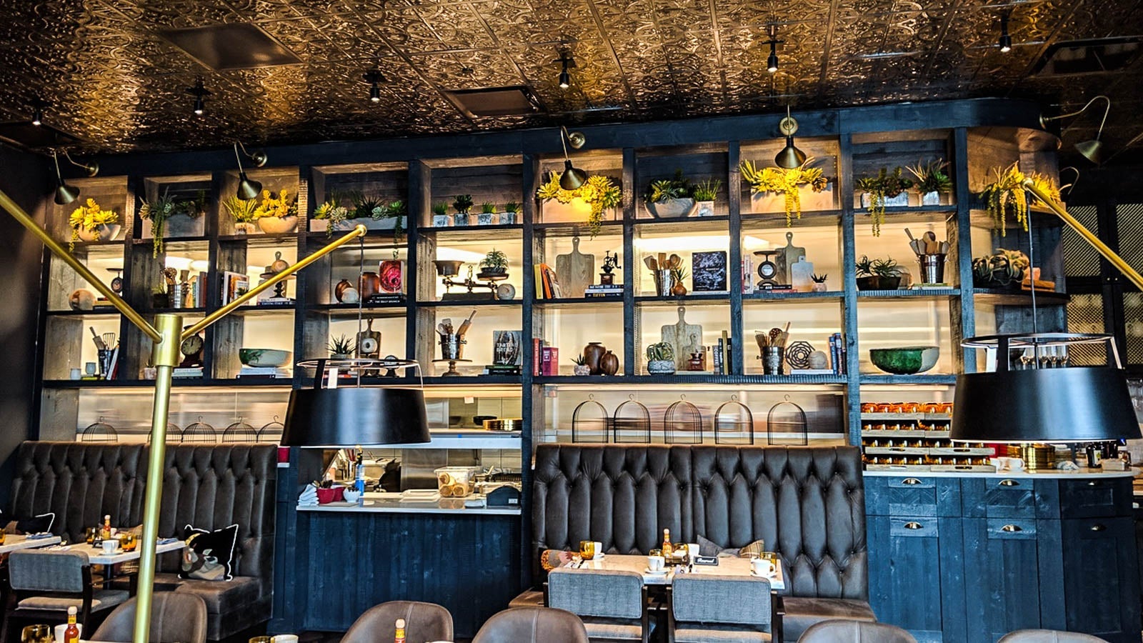 The decor is just as much of a treat as the food, with richly textured ceiling tiles and eye-catching bookshelf nooks featuring culinary and literary inspiration.