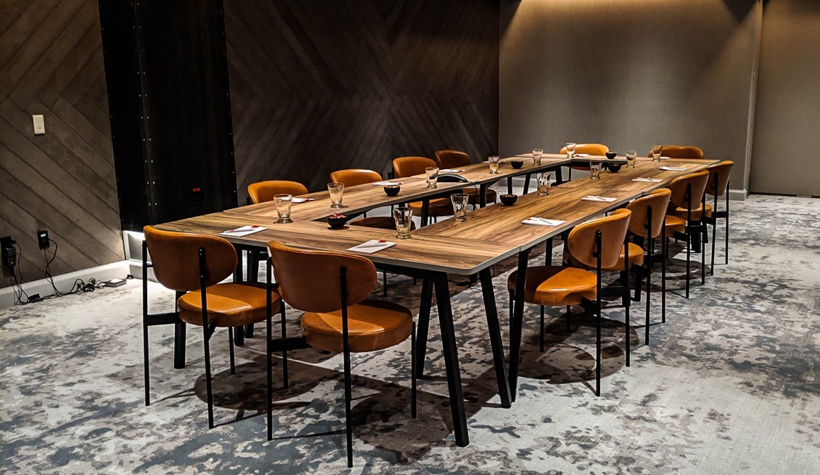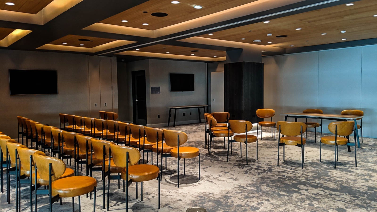 Here, modular walls allow visitors to configure rooms to suit their needs, from large seminar sessions to intimate board meetings.