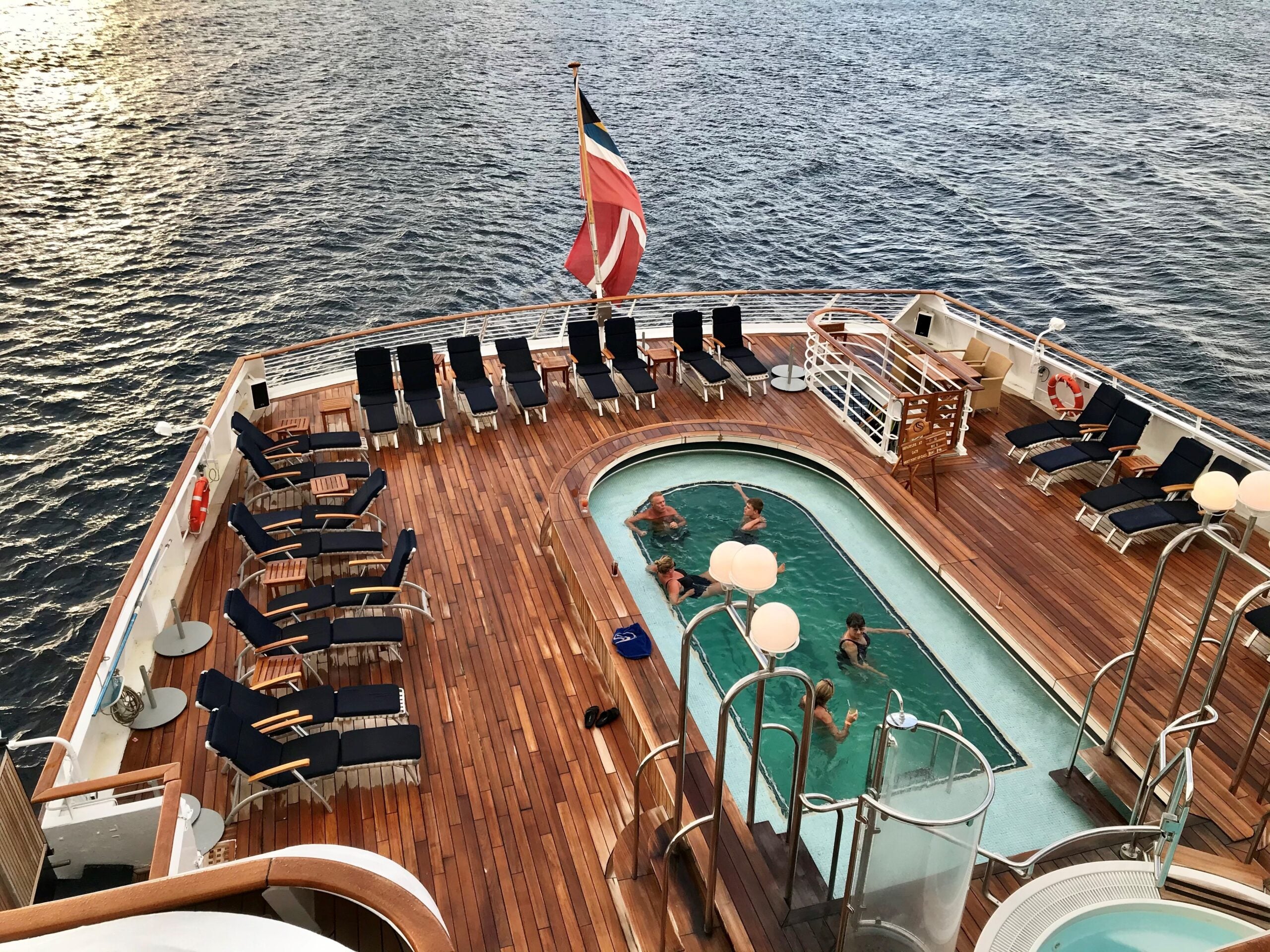 When not off the ship on an adventure (more on this in future dispatches), passengers lounge during the day around the back-of-the-ship pool or head down to the marina to take out a kayak for a paddle.