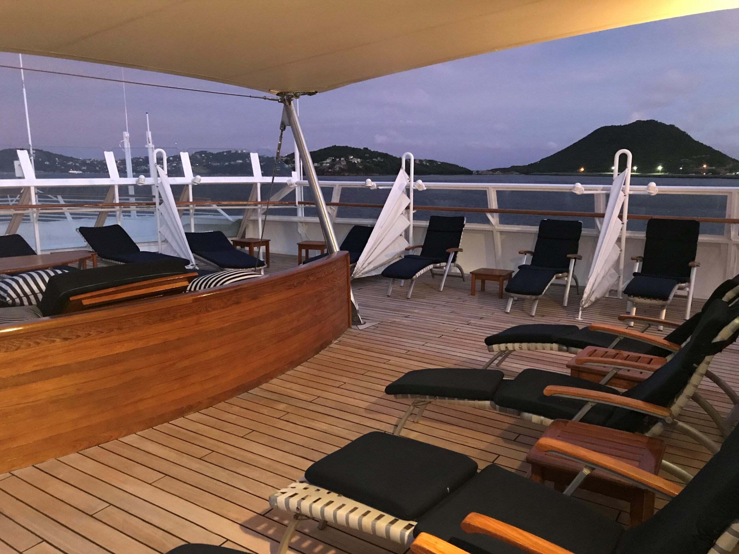 Not that SeaDream has had to implement such capacity restraints. For now, at least, bookings for the vessel's early Caribbean sailings remain modest. The 53 passengers who have signed up for this trip amount to just 47% of the number you'd normally find on board.