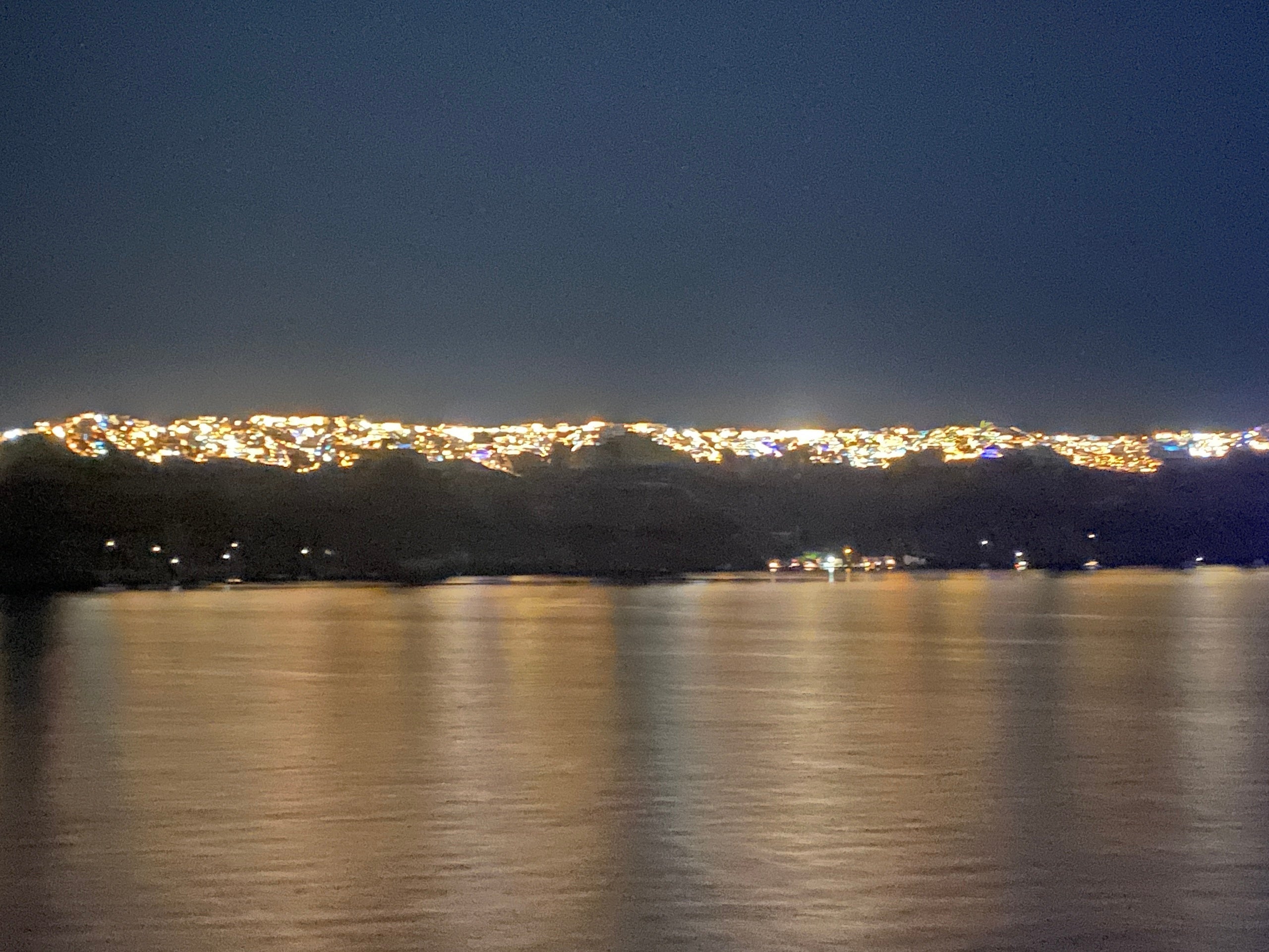 Although the cruise ship sailed overnight instead of remaining docked, we did occasionally depart late enough -- or arrive early enough in our next port -- to see the lights of the other cities from the water. Like wise, ancient eyes, they shimmered down from the hills, making for phenomenal photo opportunities.