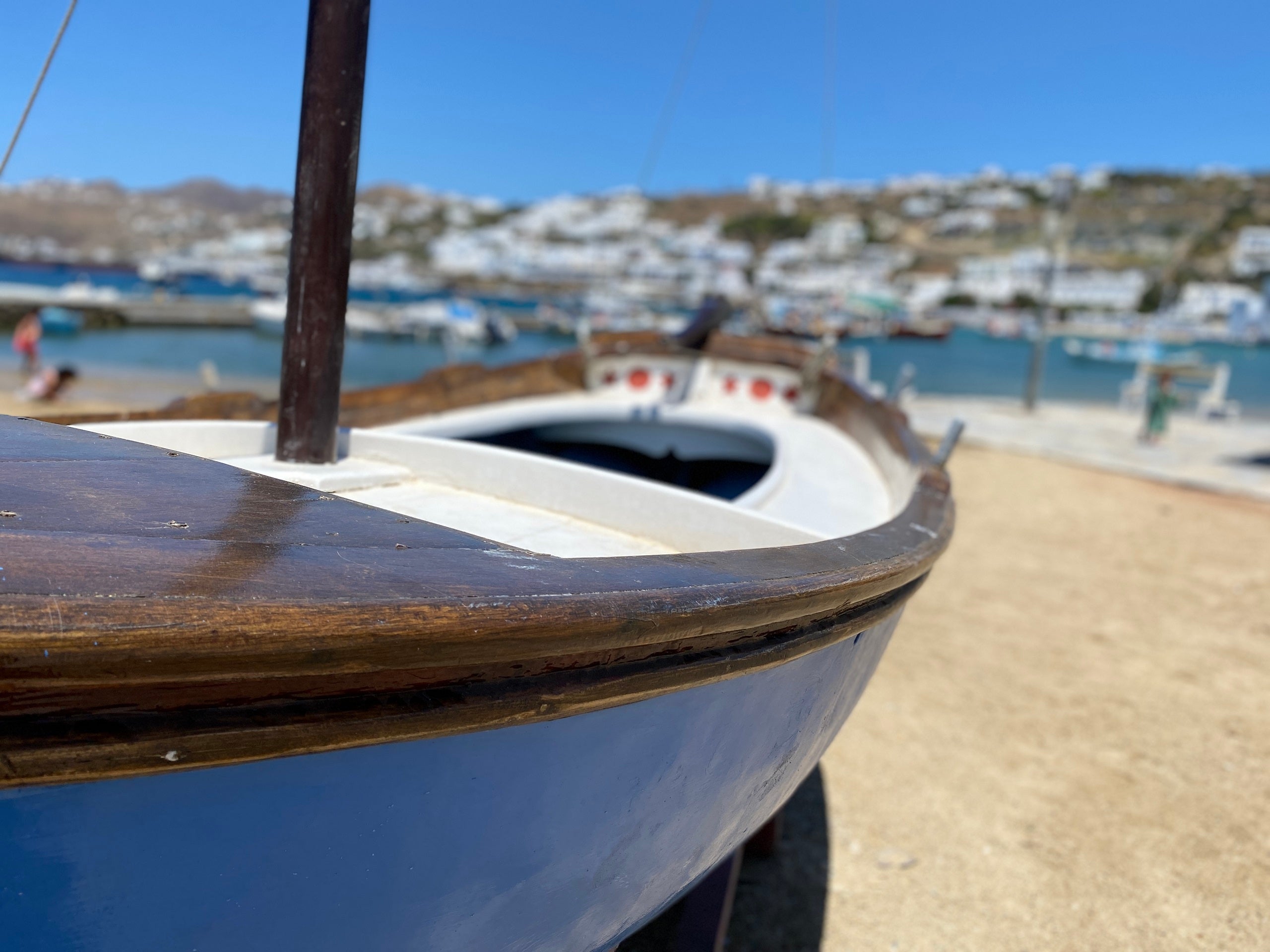 Because the buildings there slope gradually up a hill, rather than straight up the side of a cliff, it felt more like I was immersed between them instead of hovering above them and looking down, as was the case with Santorini. I made my way through the part of Mykonos known as Little Venice and stumbled on a nondescript restaurant where I had lunch on my own outdoor balcony with sweeping ocean vistas so magical that I felt like I was living in a postcard.