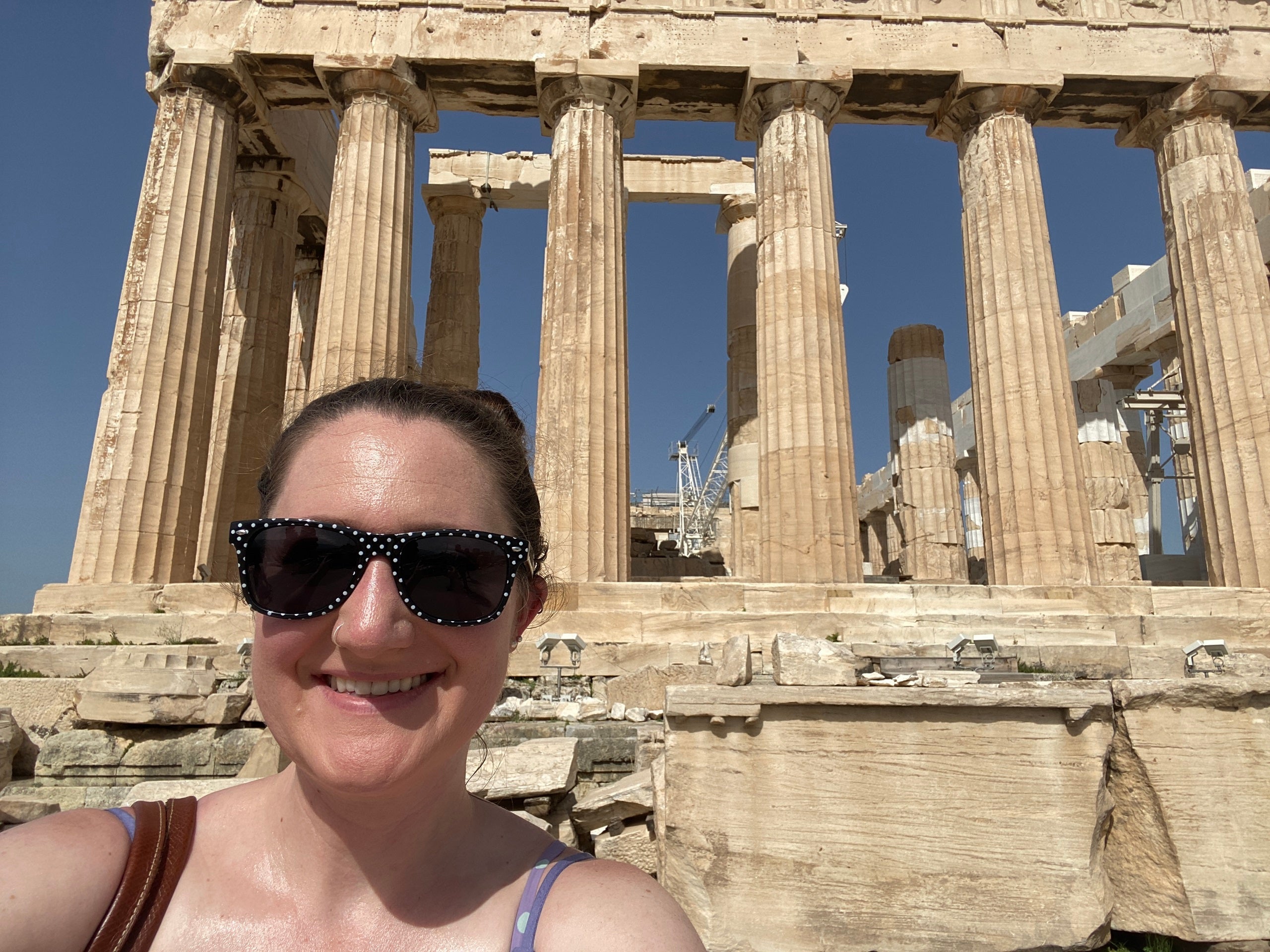 I slathered on SPF 50 multiple times throughout my trip to avoid burning under the blazing sun. This was especially true during my post-cruise day trip to the Acropolis, where I dove into the shade of the Parthenon to avoid melting as I eagerly snapped photos and sweated straight through my clothes. (It was so bad, I booked a day-use rate at the airport Sofitel just so I could shower before my flight home.)