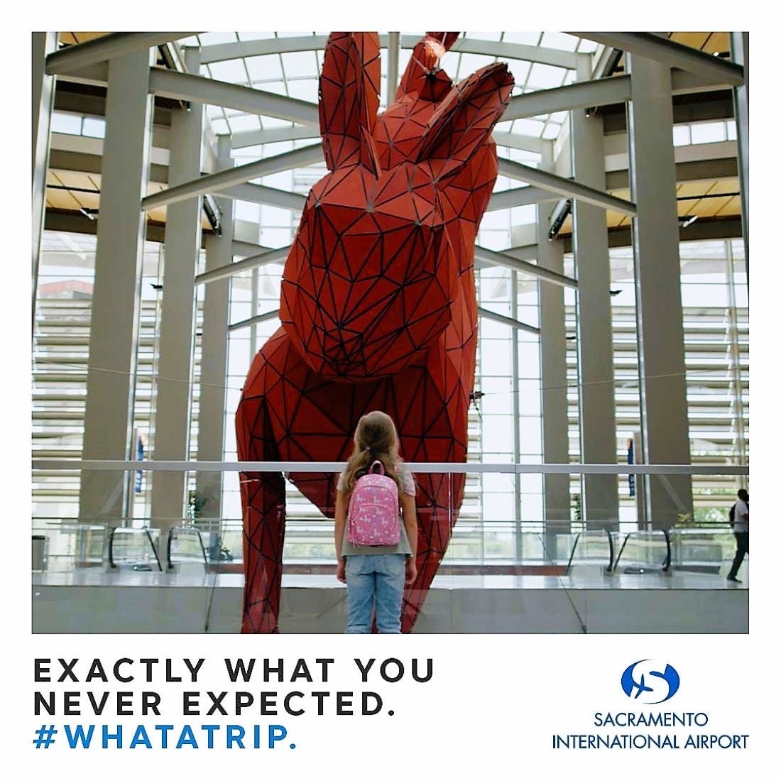 Tampa isn't the only airport with a giant sculpture of an animal inside the terminal. Across the country, in California's Sacramento International Airport, there's 56-foot-long red aluminum rabbit in the bag claim area. Lawrence Argent's sculpture is titled "Leap."