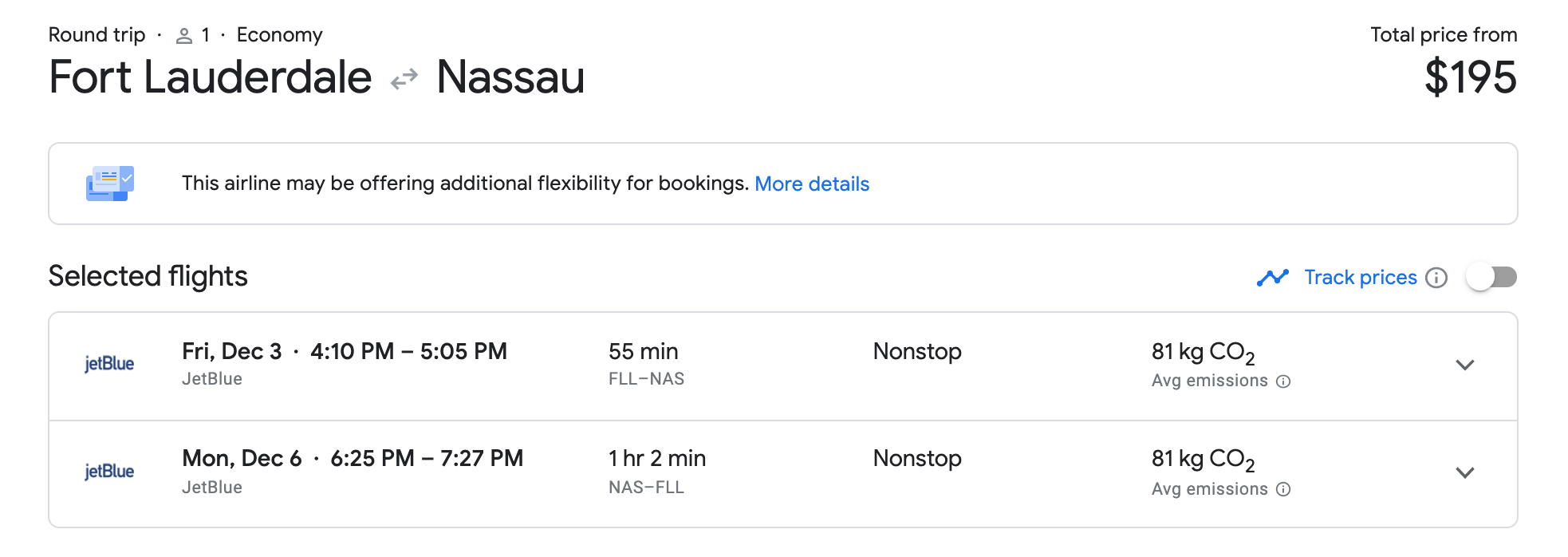 Search for these flights by heading to Google Flights and start by entering your departure city of choice and Nassau (NAS) as your destination, along with your preferred dates.