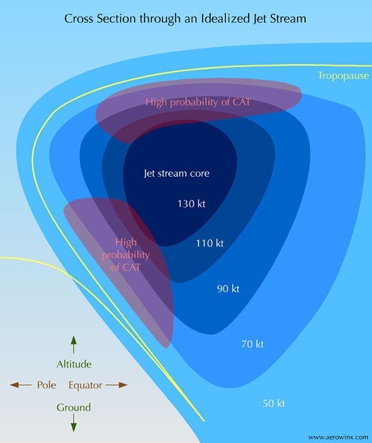 As a result, the core of the jetstream is where we really want to be in order to take advantage of the fast-moving winds. This may mean flying at an altitude that is below optimum for the engines but will ultimately save more fuel due to the reduced flight time.
