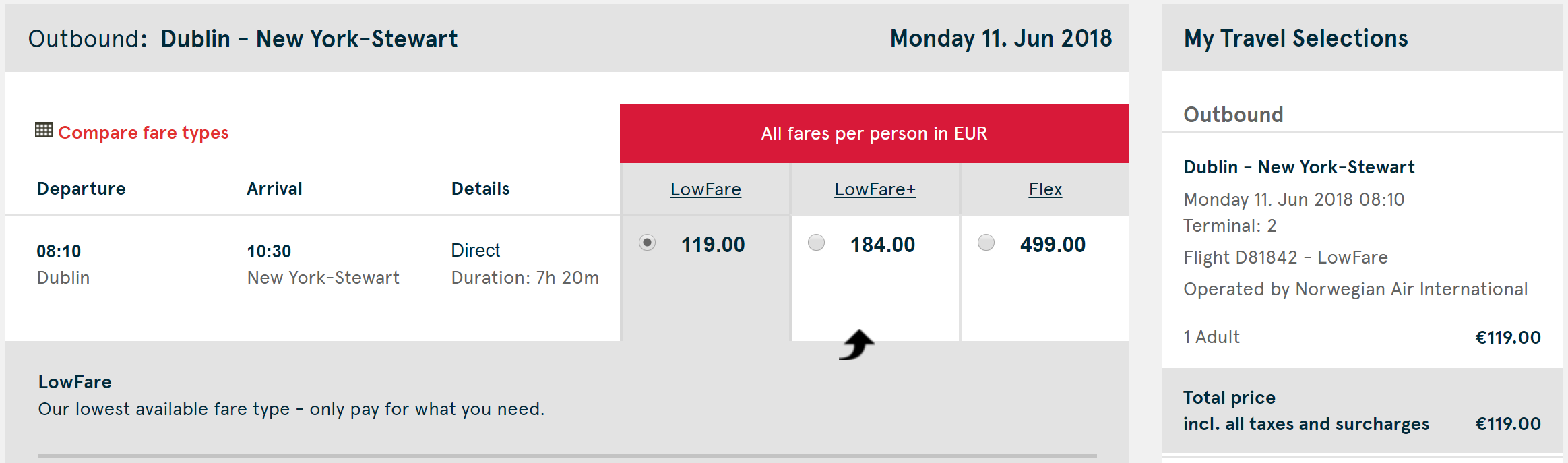 New York's Stewart (SWF) to Dublin (DUB) nonstop on Norwegian for $239 round-trip ($99 outbound, $140 return):