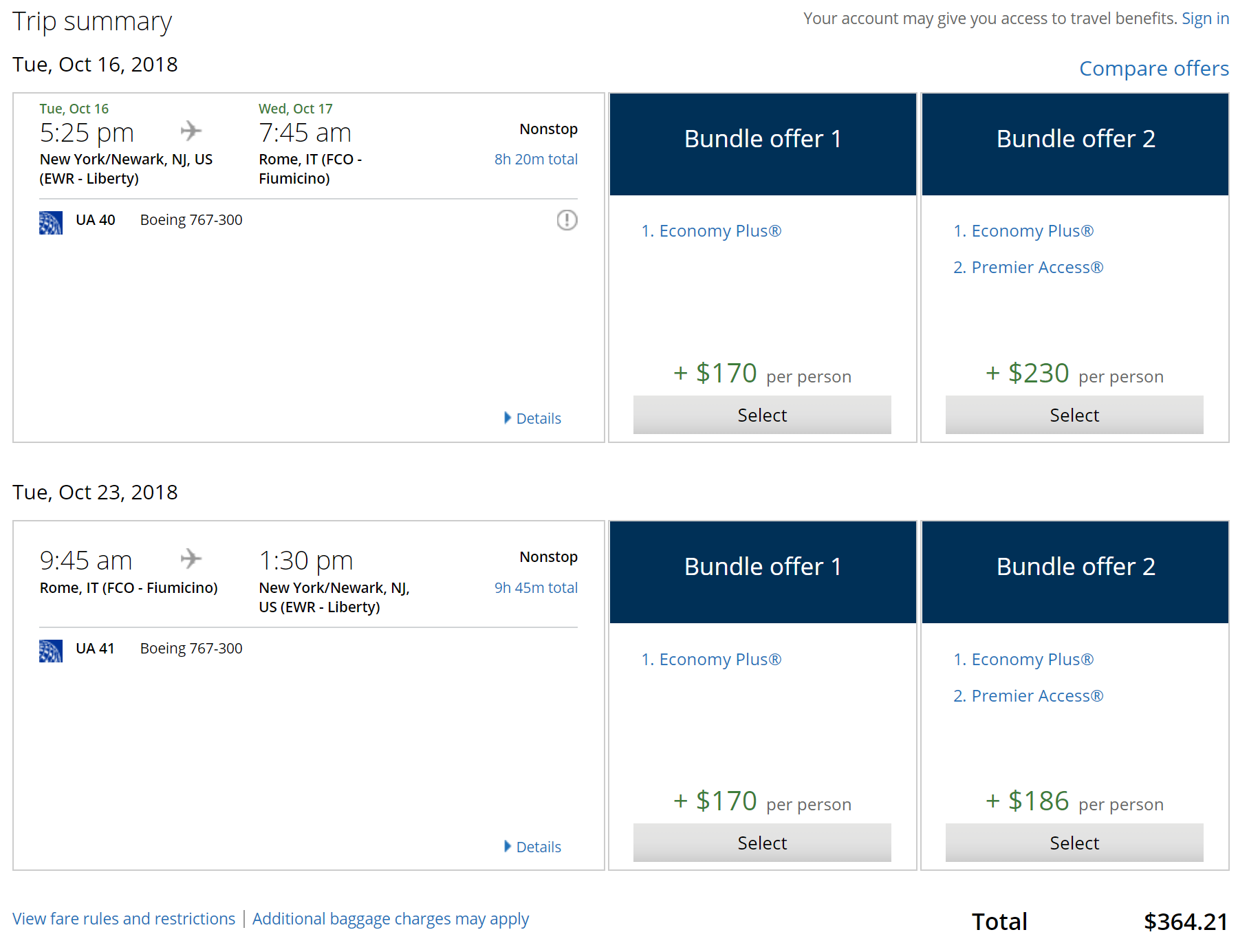 Newark (EWR) to Rome (FCO) nonstop on United for $364 round-trip: