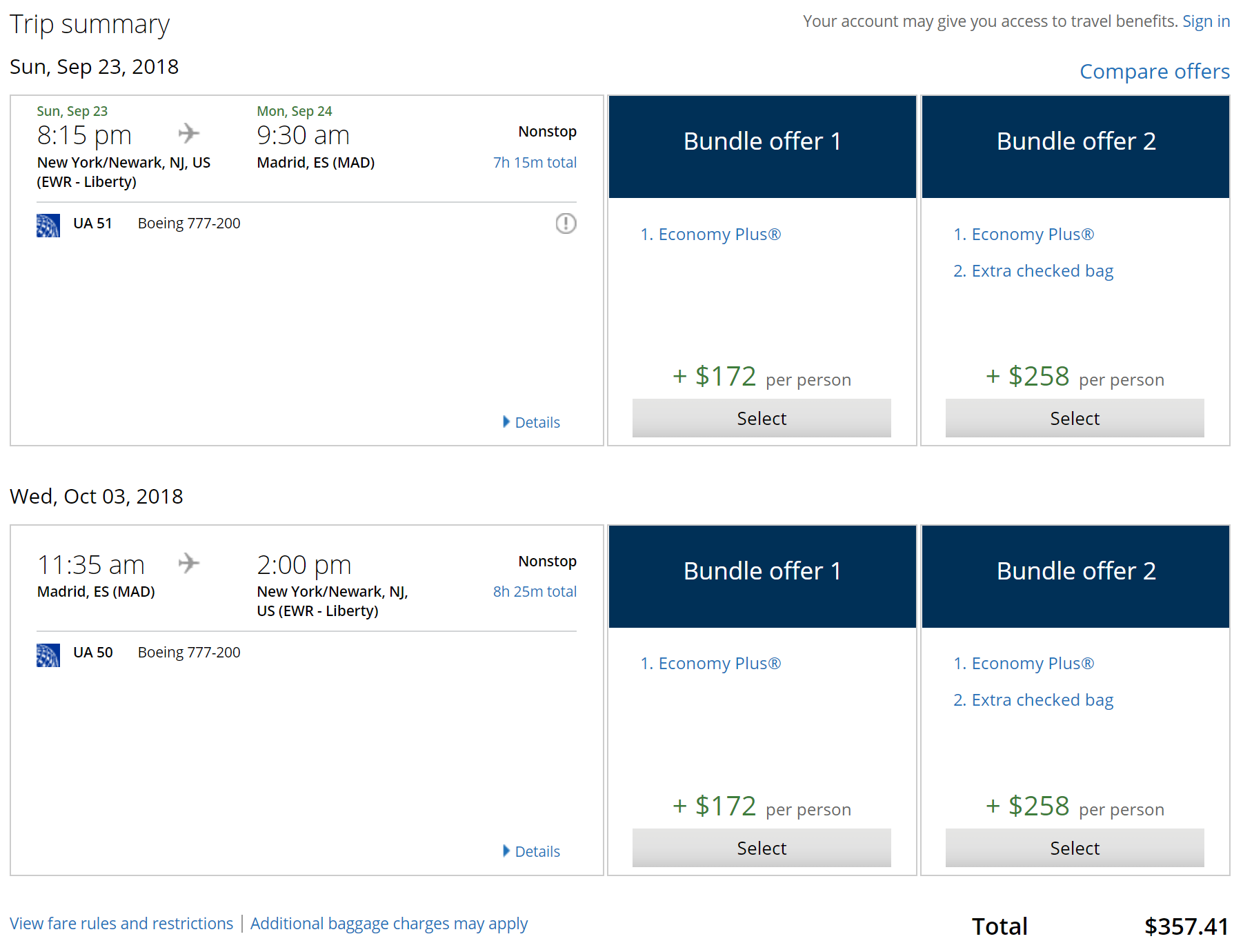 Newark (EWR) to Madrid (MAD) nonstop on United for $357 round-trip: