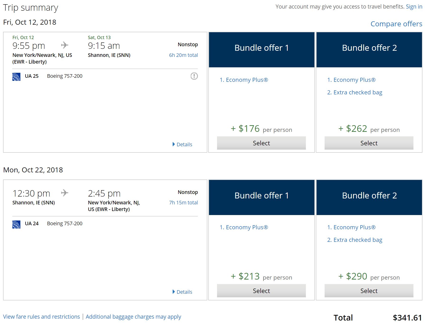 Newark (EWR) to Shannon (SNN) nonstop on United for $342 round-trip: