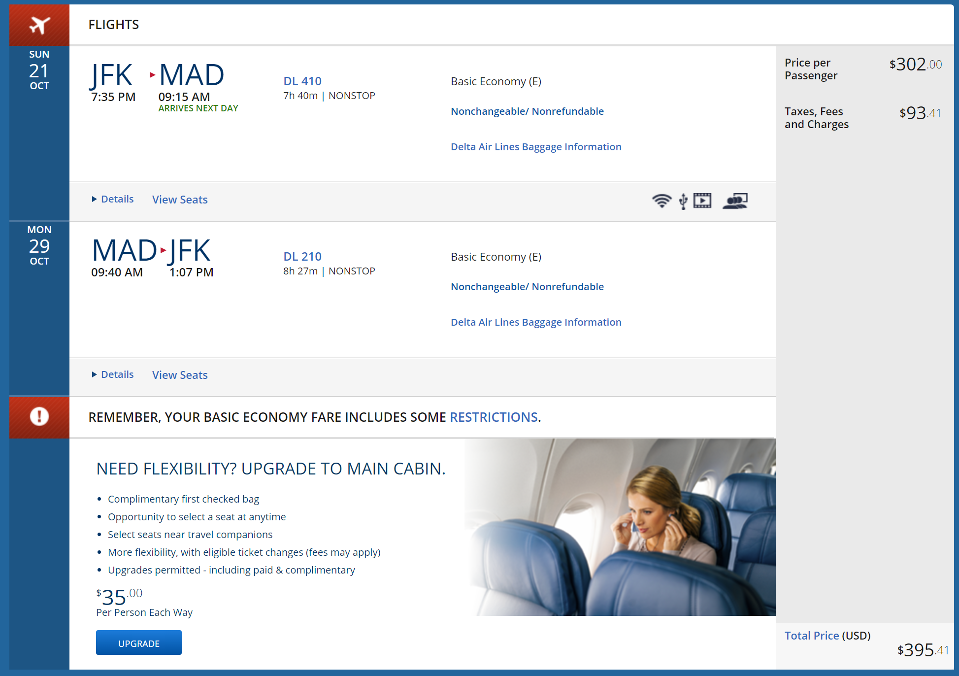 New York's Kennedy (JFK) to Madrid (MAD) nonstop on Delta for $395 round-trip: