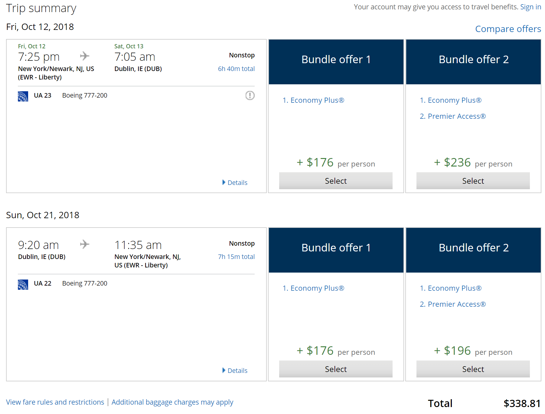 Newark (EWR) to Dublin (DUB) nonstop on United for $339 round-trip: