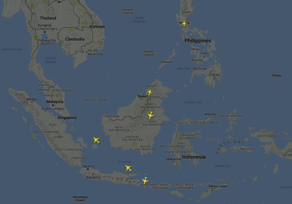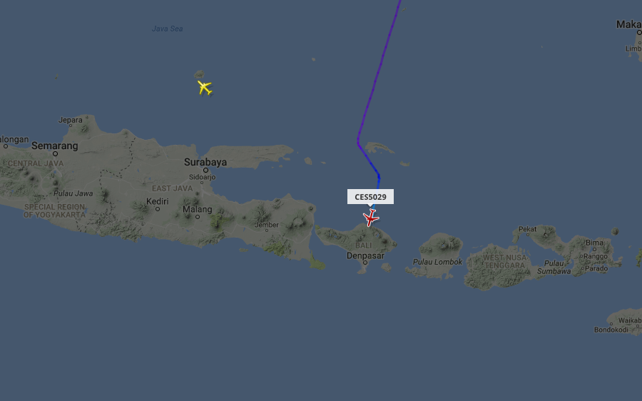 In this screenshot you can see that only six planes were either departing or heading towards Bali at 12:06am Bali time (11:06am EST). Only three carriers, China Eastern, Lion Air and Singapore Airlines, were operating at the time of the screenshot.