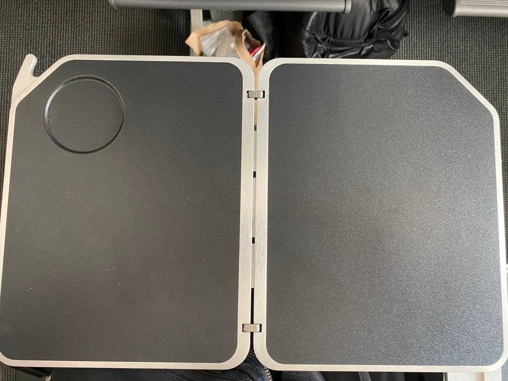 Although the folding tray tables were extendable, they still felt cramped when our meals were served, taking up their entirety.
