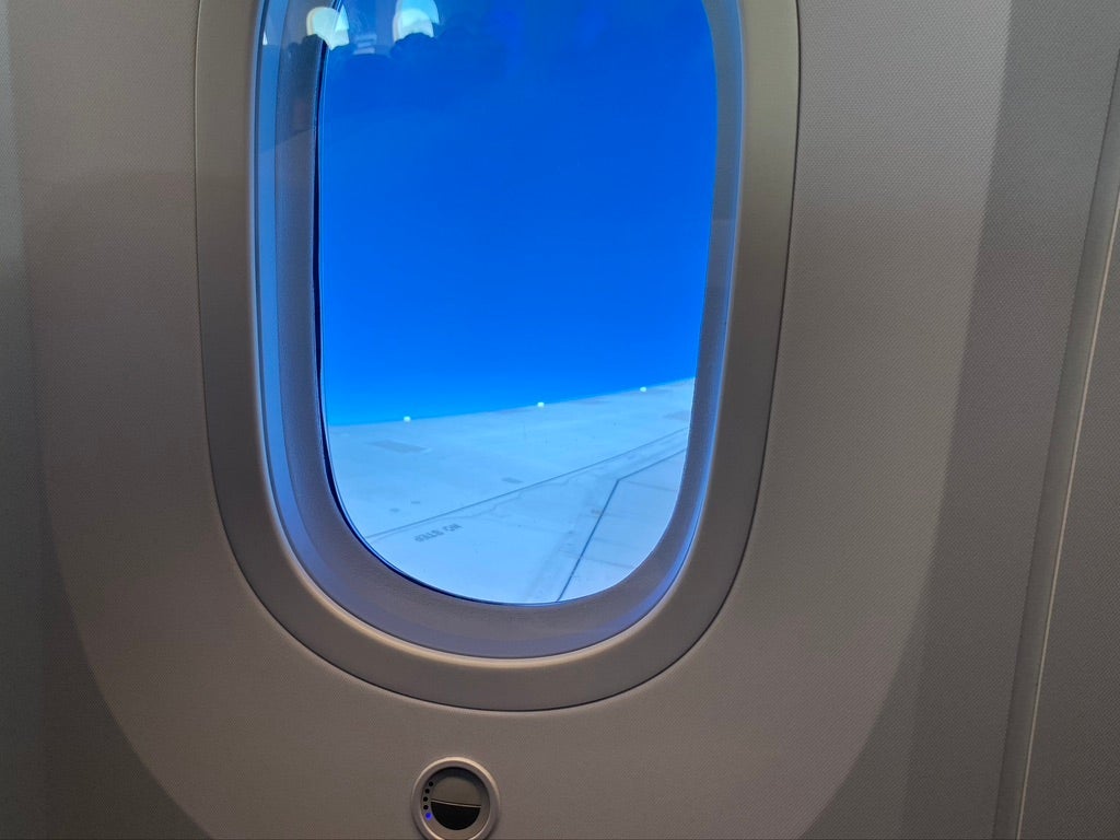 One thing I also noticed was the ability to change the tint of the window to block out light depending on the time of day, as shown below. This a cool feature on some new planes including Dreamliners, though it's not always "enabled" by flight attendants.