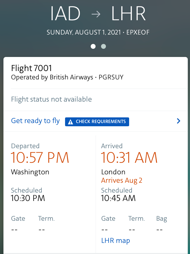 Delays are to be expected, especially during pandemic flights, and I experienced delays on both flights: 43 minutes en route to LHR and nearly 50 minutes on the way home.