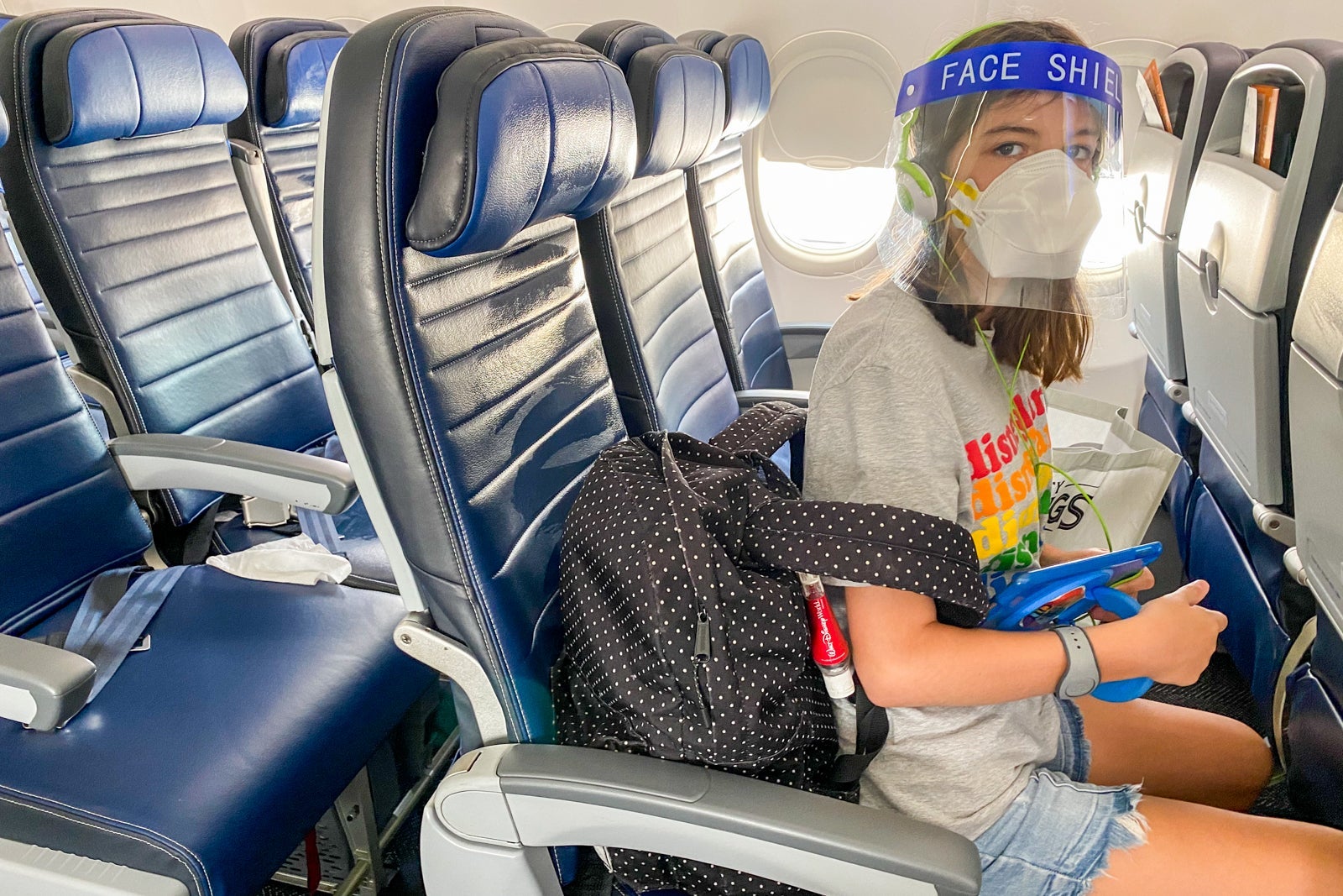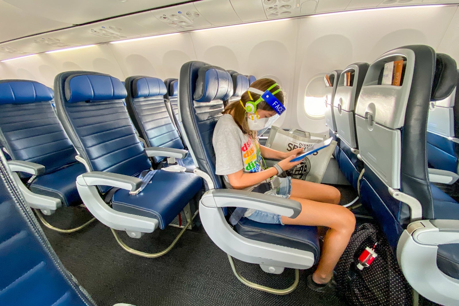 Deplaning: This was the worst part. Deplaning, as far as I could tell, was the same as always, which is to say that everyone stands up at once to get their bags and get off the plane. It was without a doubt the least socially distanced 60 seconds of our entire trip -- and that includes our time at Disney World. Lucky for us, we were in the first row, so we were off as quickly as possible. I don't know if the situation changed after, but there was no social distancing happening at the front of the plane when it was time to say goodbye to the flight as fast as we could.