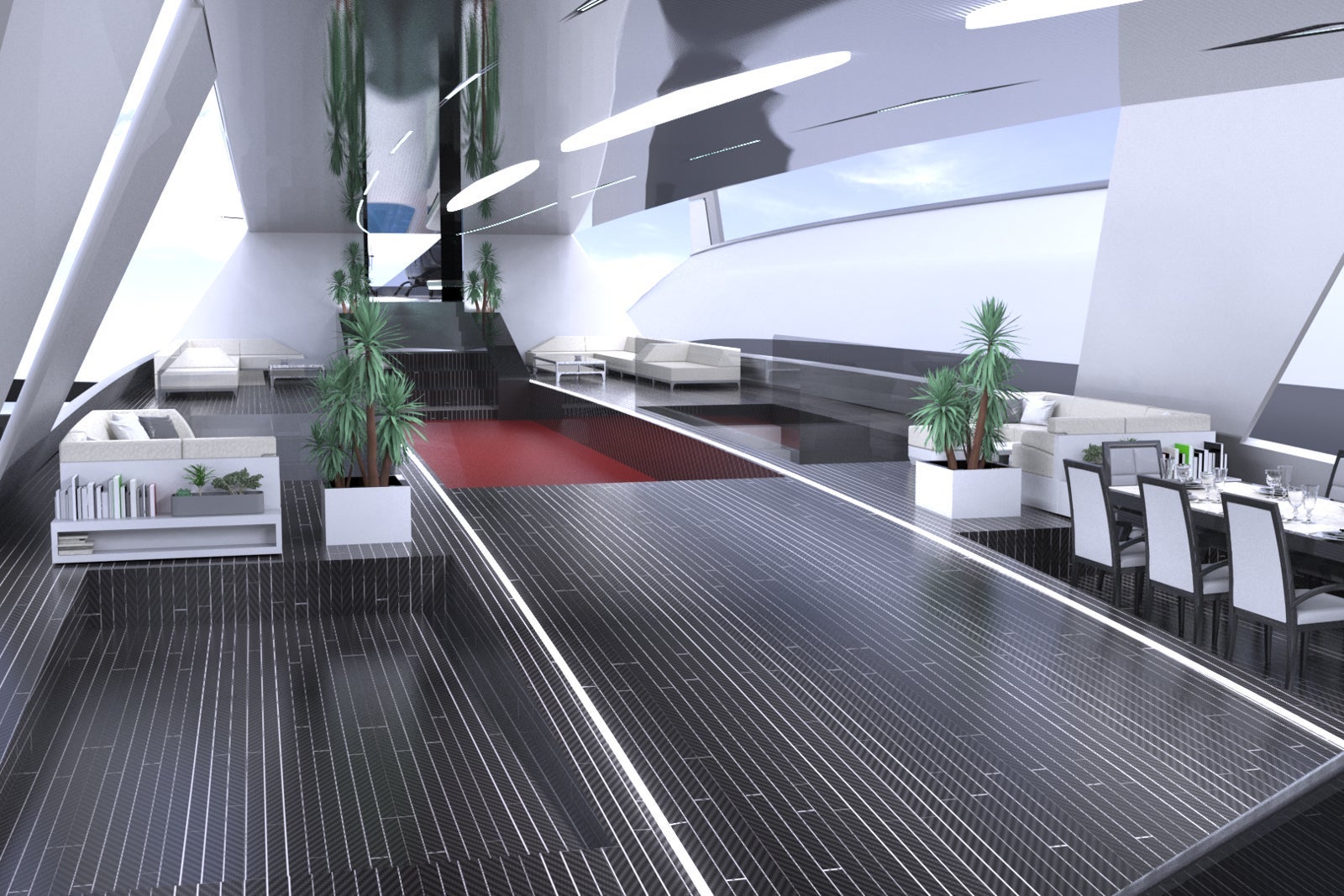 The Air Yacht has a stated flying endurance of 48 hours, and it is being designed to allow for boarding and deboarding while on the move. Helicopters would be able to land on a helipad located on top of the cabin to drop off or pick up passengers, the studio says.