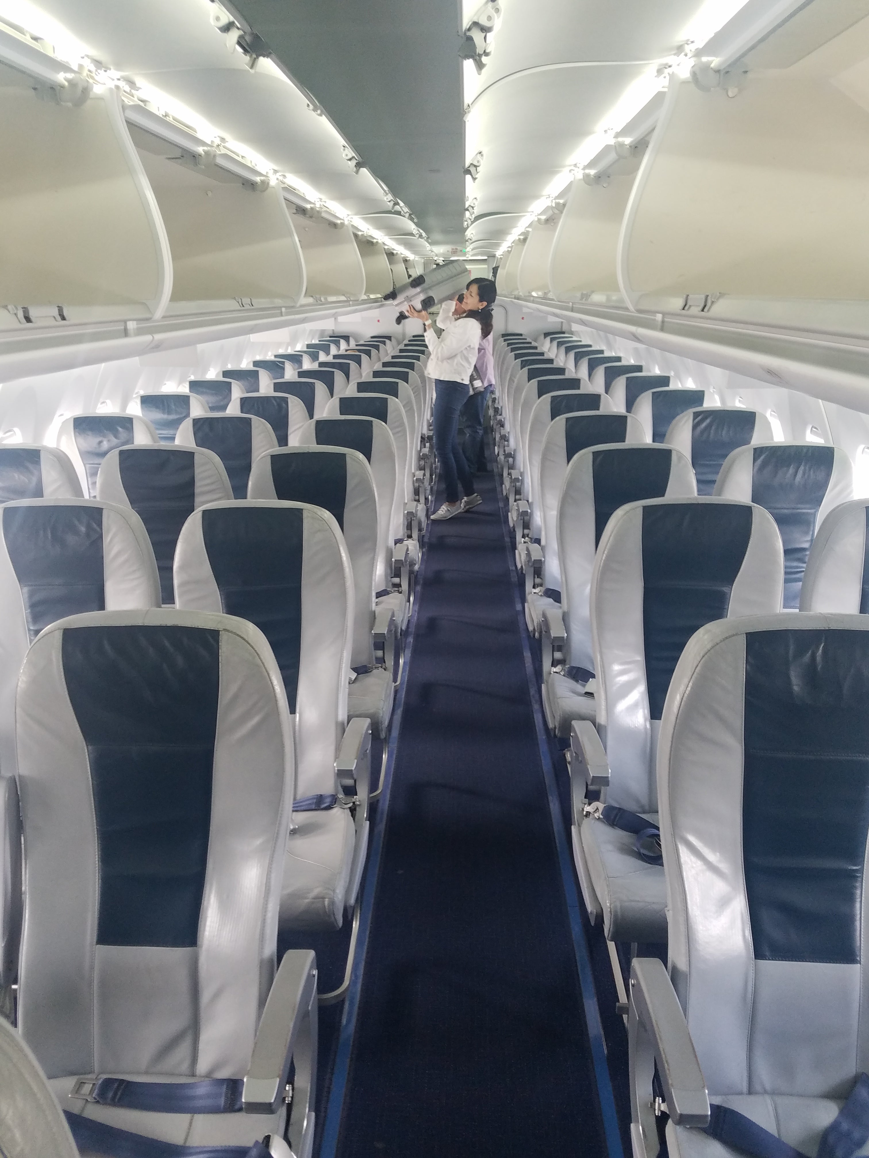 No more than three dozen passengers were aboard the 93-seat airplane, whose airy cabin gave a sense of spaciousness.