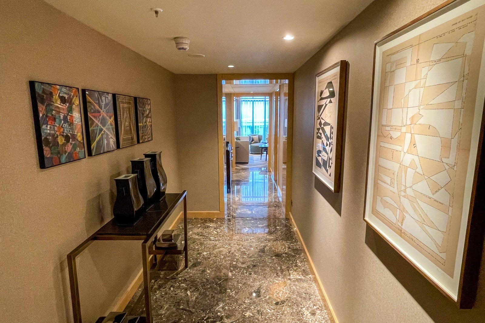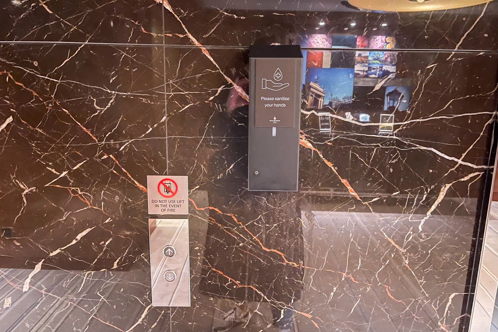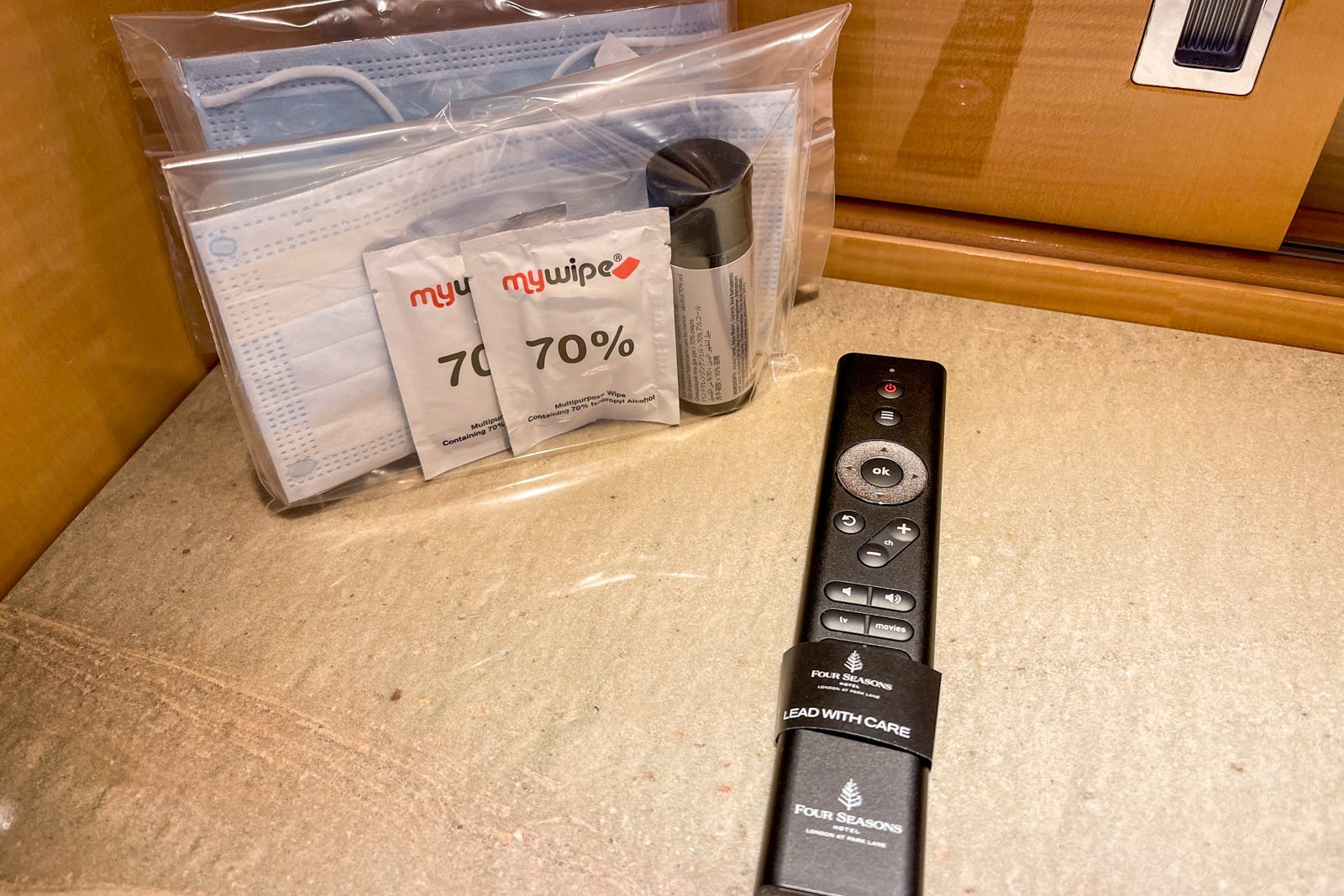 Though guests weren't as frequent of sights throughout the lobby, the one recurring theme was the emphasis on guest safety — part of the Four Seasons' "Lead With Care" initiative. At each elevator station, there was a motion sensor hand-sanitizing station. Additionally, on each floor of guest rooms, there was a table with spare face masks — perfect if you've left your room without a mask.