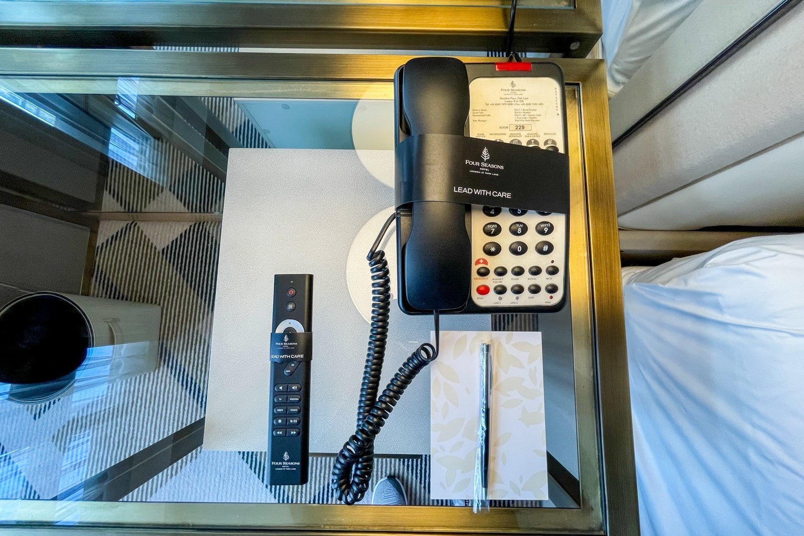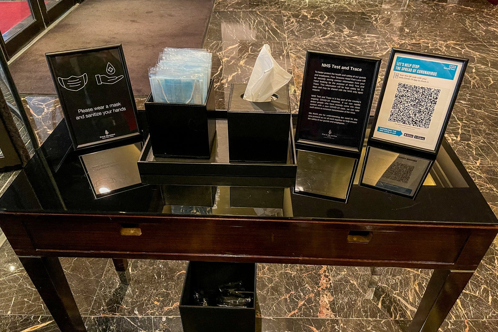Upon entering the Four Seasons at Park Lane, it was clear this wasn't the travel experience that I'd been used to in years past. I arrived at the hotel via Uber because of London's temperamental rain and stormy weather (happy spring in England!). A cheerful bellhop opened the front door for me — a notable change in that gone are the days of high touchpoints on a rotating door.