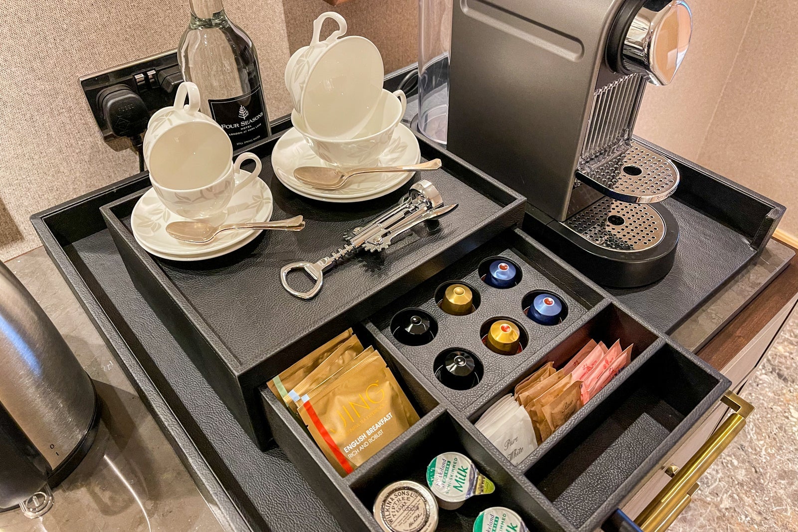 Rather unfortunately, the Lead With Care program means that the hotel isn't stocking its in-room mini-refrigerators — an important note if you like to take advantage of a drink from the comfort of your room. However, there was still a coffee and tea selection on offer.