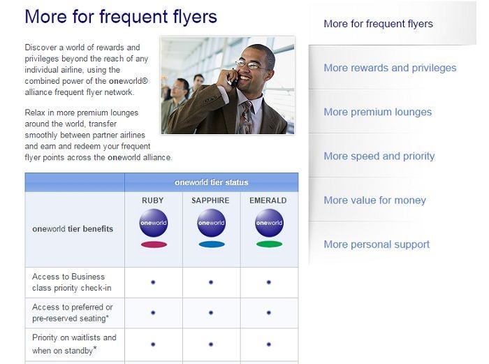 Get priority check-in, preferred seats and standby priority on Oneworld airlines.