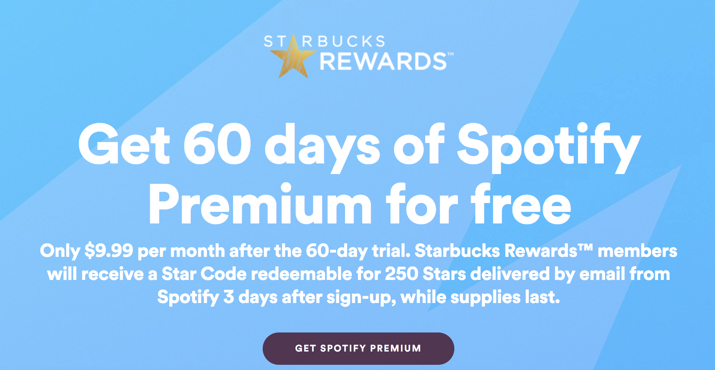 Get 250 Starbucks Stars and 60 Days of Free Spotify With Trial