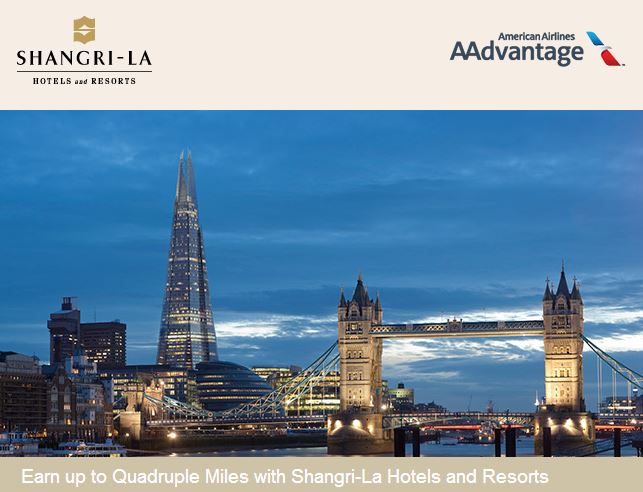 Earn Up to 4x AAdvantage Miles for Shangri-La Stays: AAdvantage members can earn up to quadruple miles when staying at any Shangri-La, Traders, or Kerry hotels. Just book your stay at the "Best Available Rate" directly with Shangri-La Hotels and Resorts to enjoy the offer. The bonus earnings are as follows: