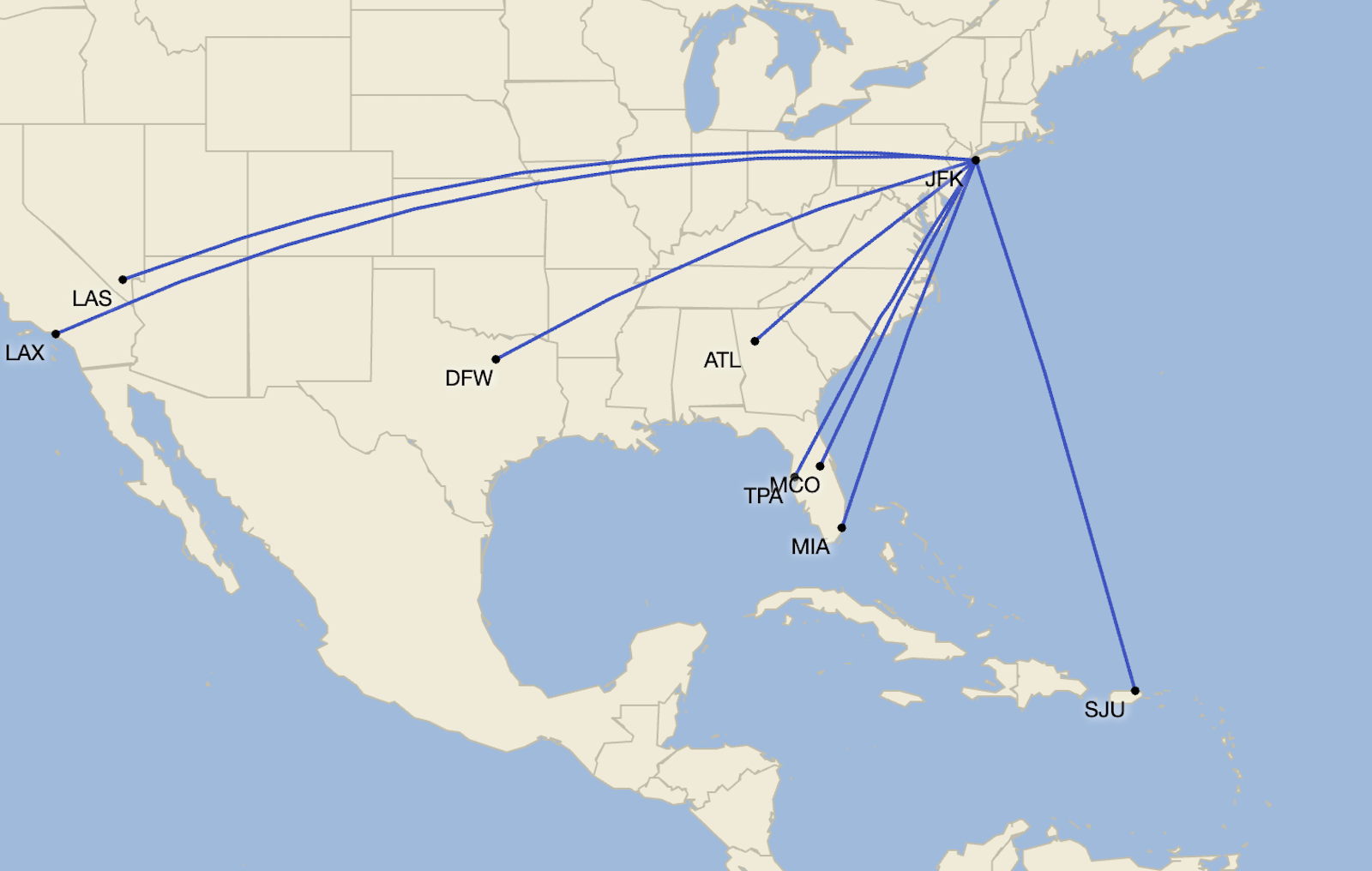 We should note that as recently as last summer, Frontier flew a fairly expansive JFK schedule, as shown in the below map from Cirium.